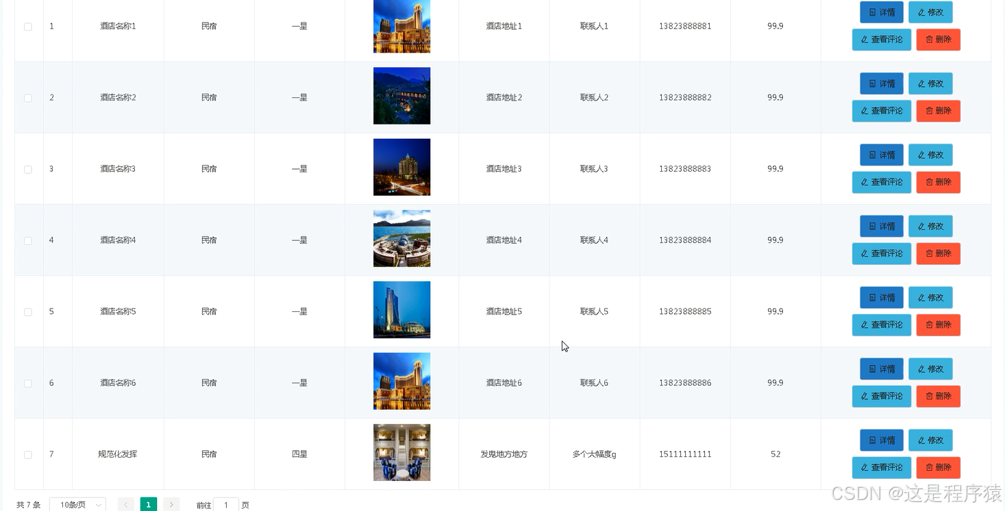 前台可以添加、修改和删除住宿信息,住宿信息管理界面展示如图5-17所示。