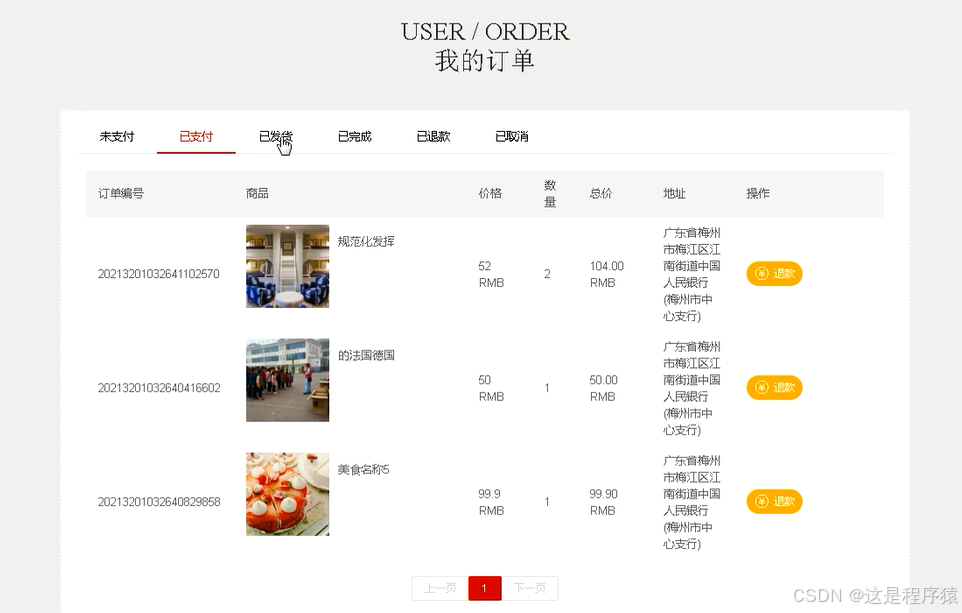 用户可进入我的订单界面查看个人已有订单信息,其界面展示如图5-8所示。