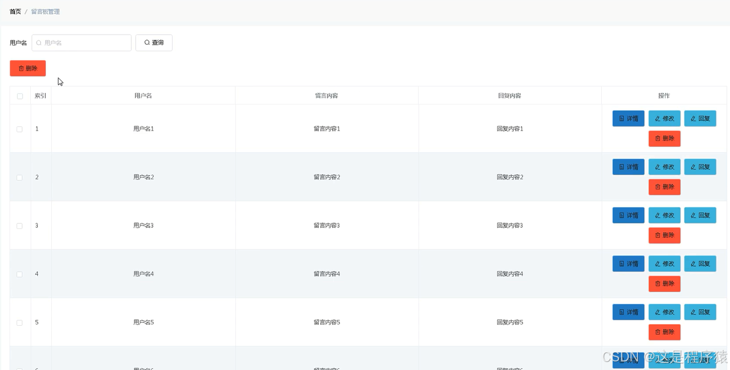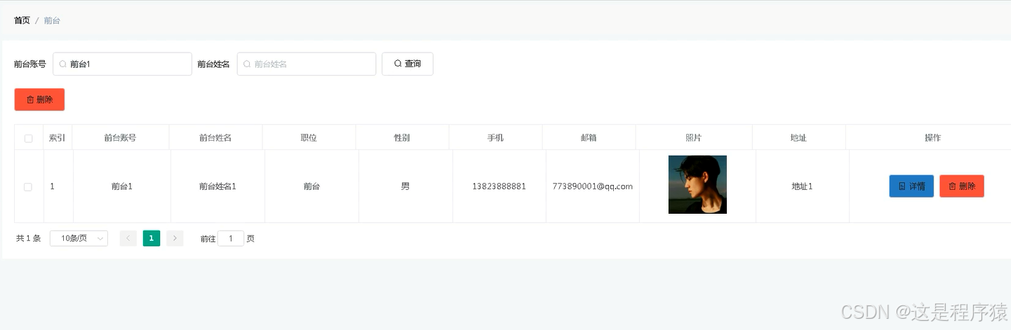 管理员可查看所有前台信息,并可对其进行删除操作,前台界面展示如图5-10所示。