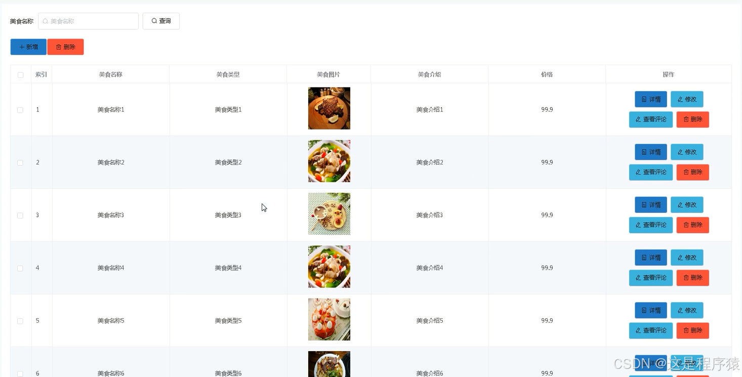 前台能添加、修改和删除景点美食信息,景点美食管理界面展示如图5-16所示。