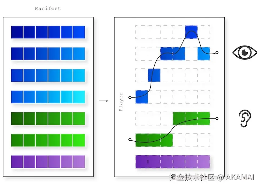 在视频播放过程中,客户端设备持续监控网络状况和其内部缓冲区水平。如果网络带宽受限,客户端将请求较低码率的视频块以防止重新缓冲。相反,如果带宽改善,客户端会请求较高码率的视频块以提升视频质量。这种码率切换是通过请求更新码率级别的新视频段来实现的。