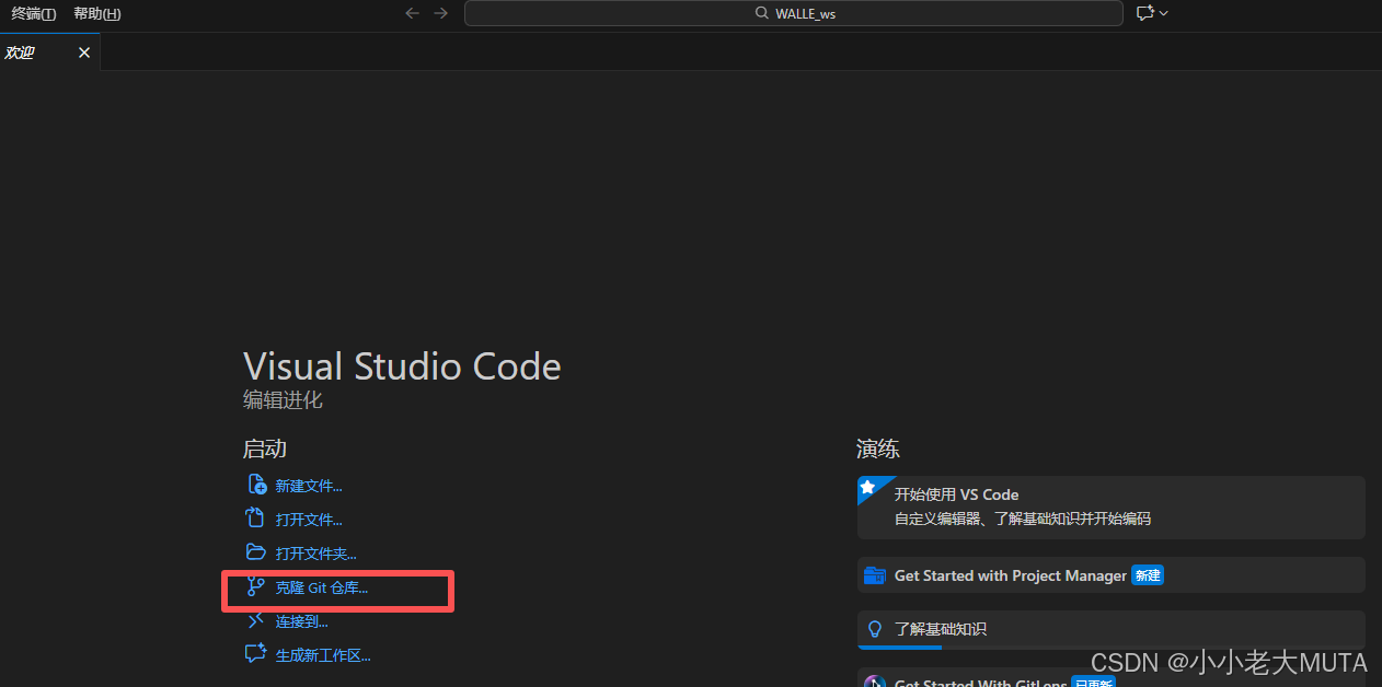 他会让选择文件夹,把github中的仓库(现在是空的,比如这个空的WALLE_ws)clone到本地