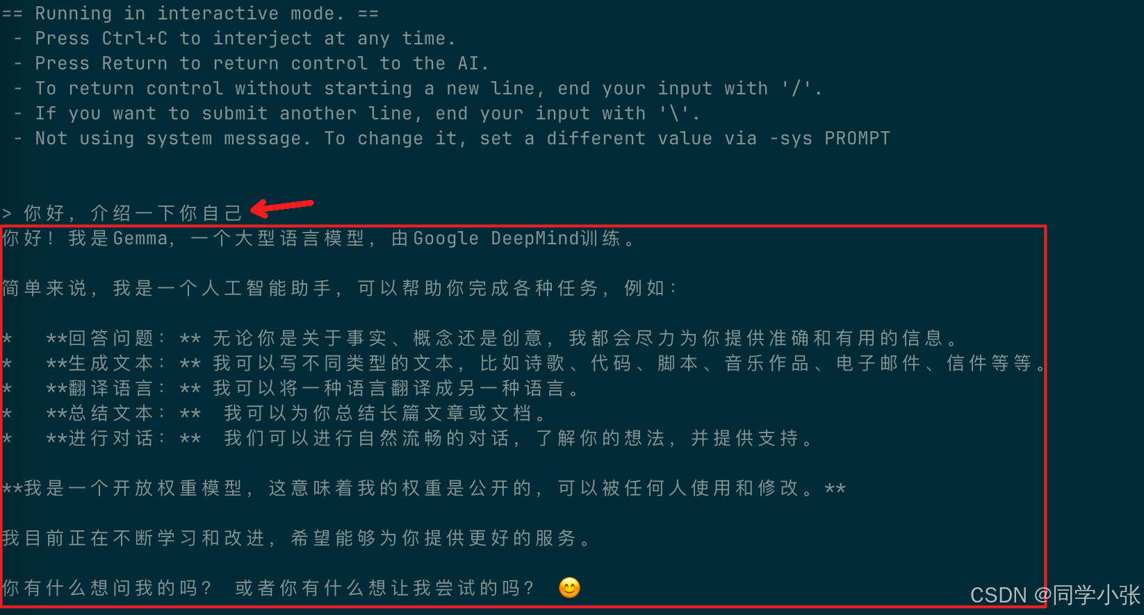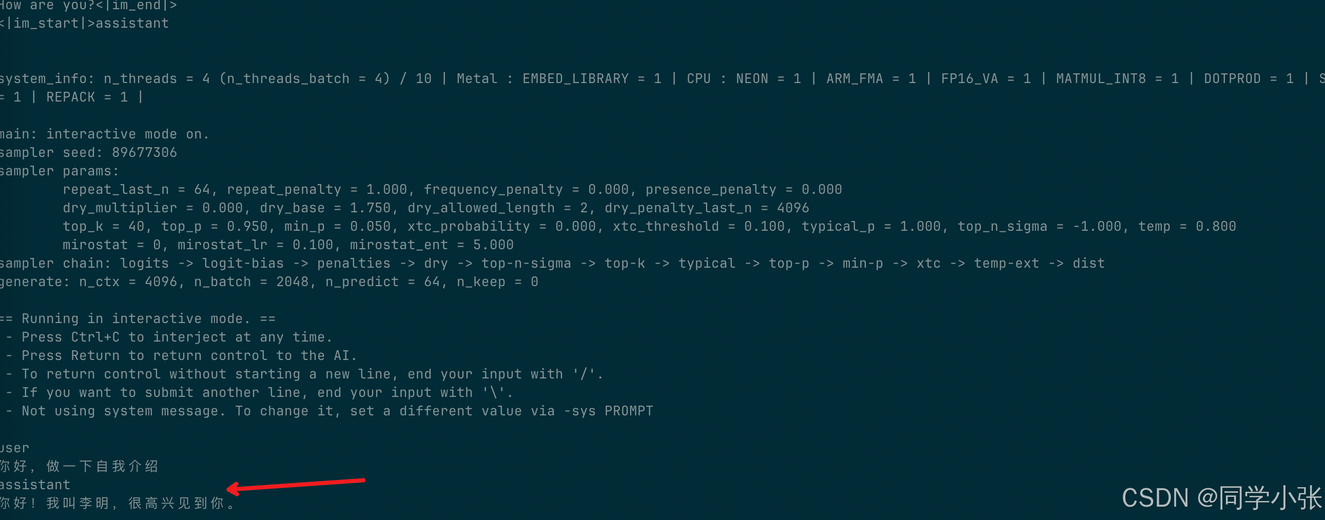 不出意外的话,你就可以像下图一样跟模型对话了。