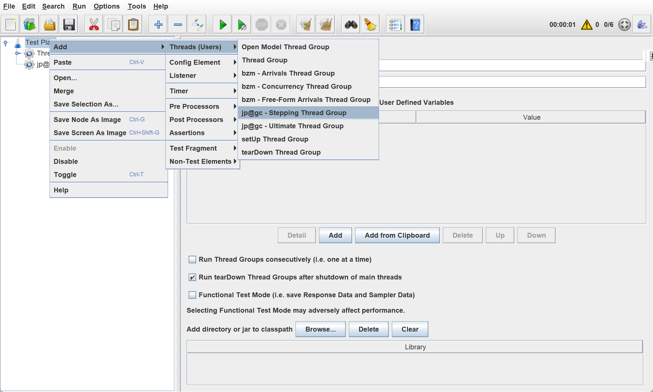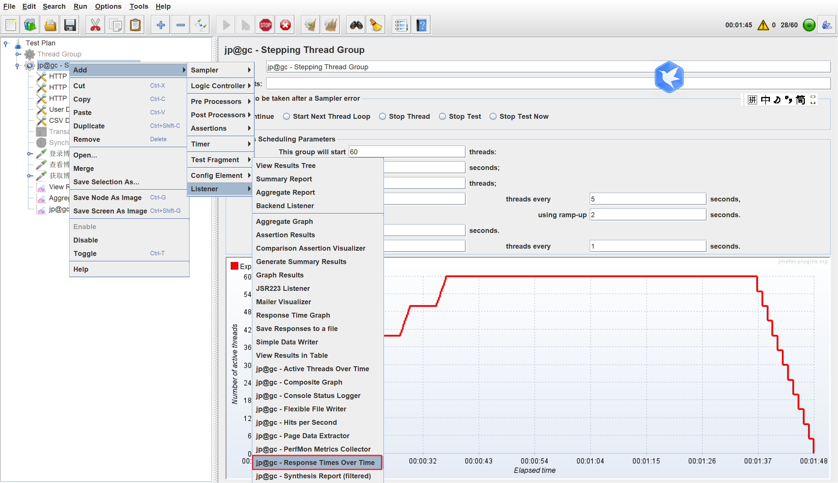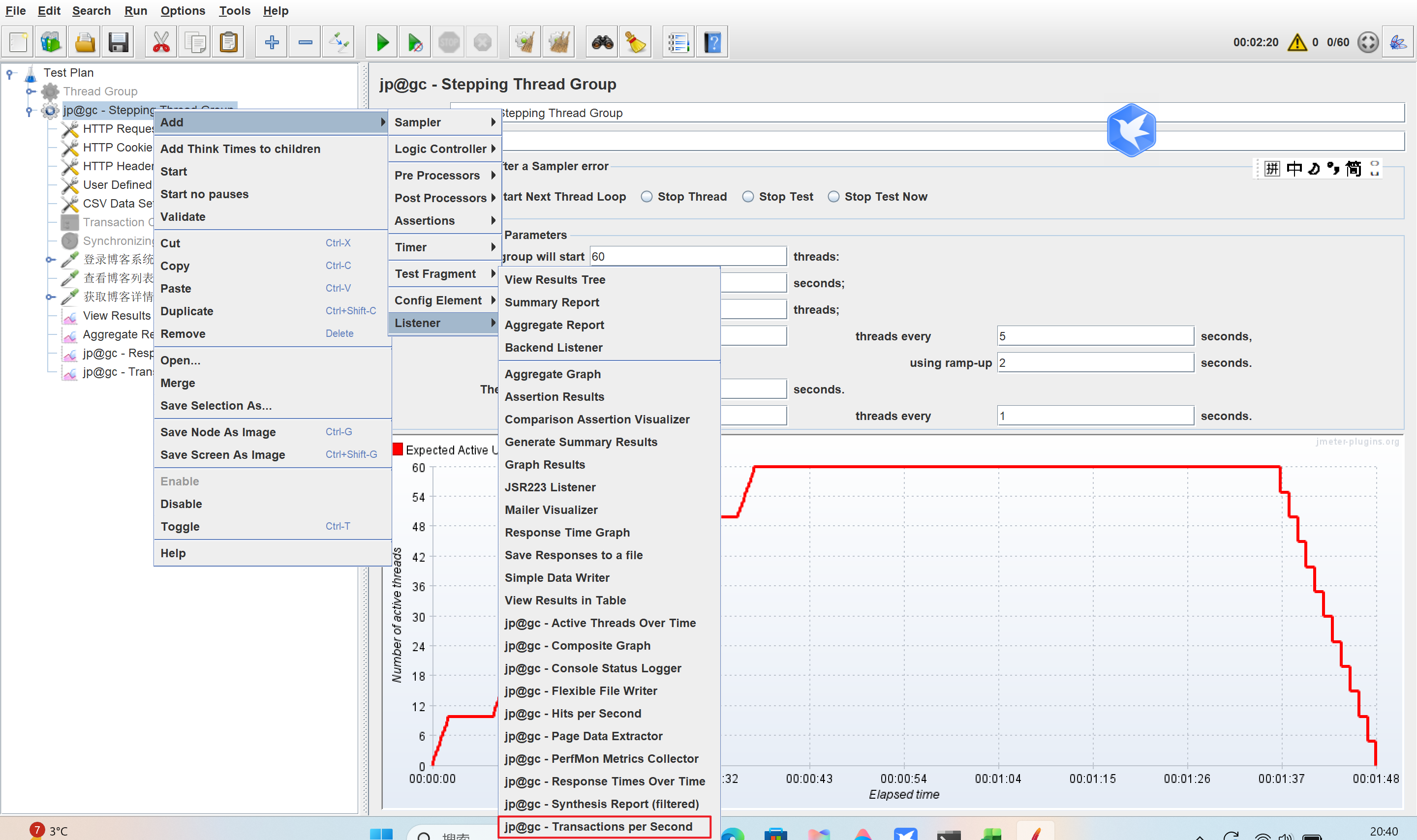 实际测试中,往往需要逐步增加线程数,来对接口进行性能测试;当前的线程组线程数是固定的,不能满足测试要求,因此需要安装其它插件来实现这个功能;