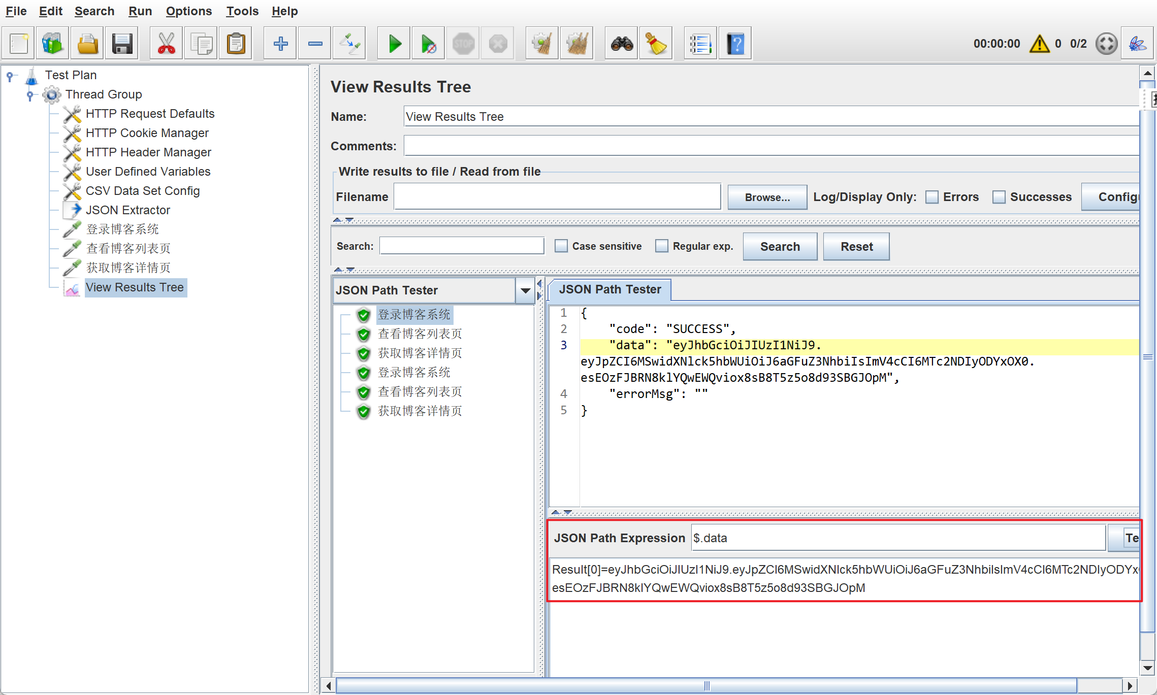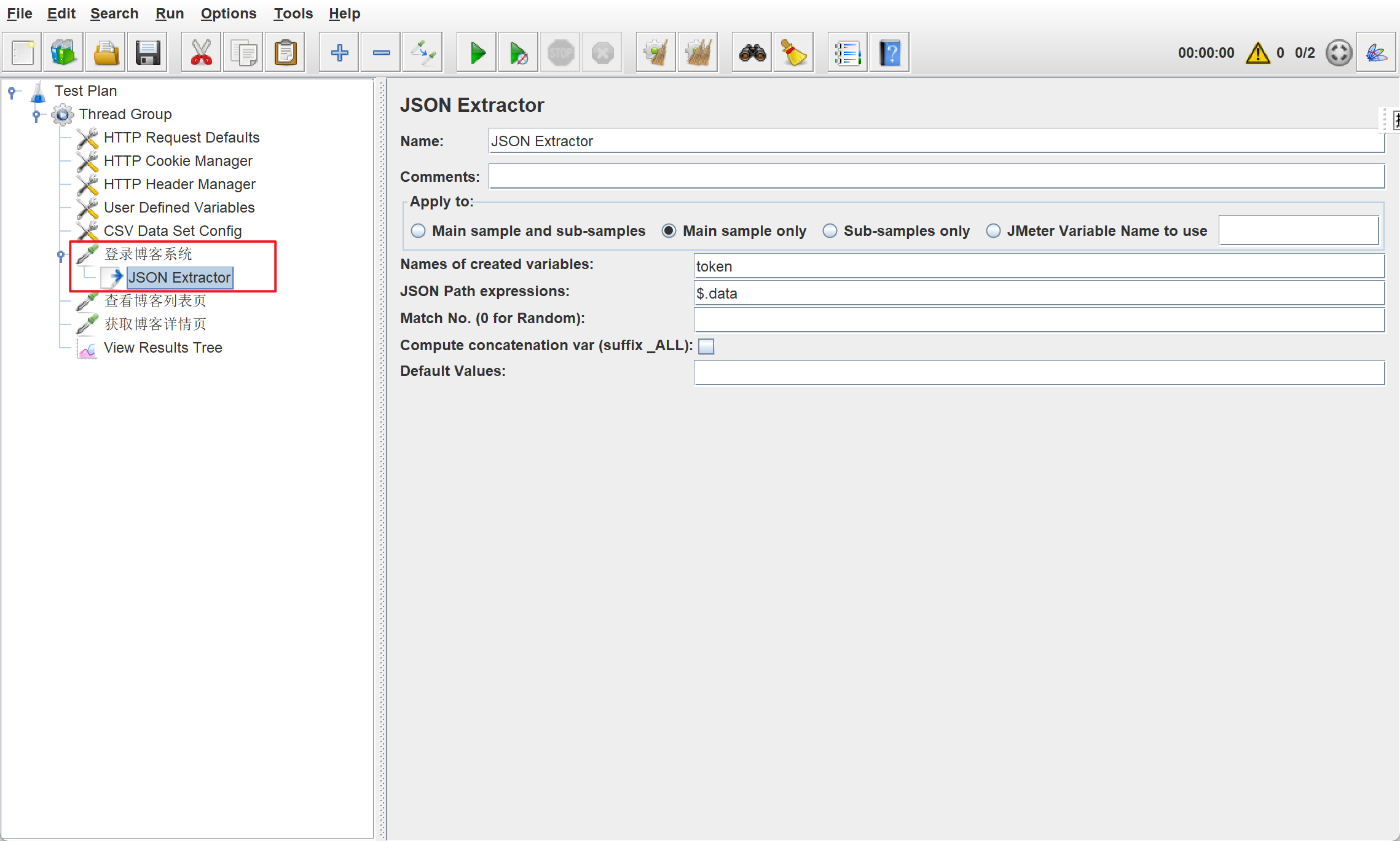 将测试正常的JSON Path写到JSON提取器中,就可以提取接口响应信息中的字段;