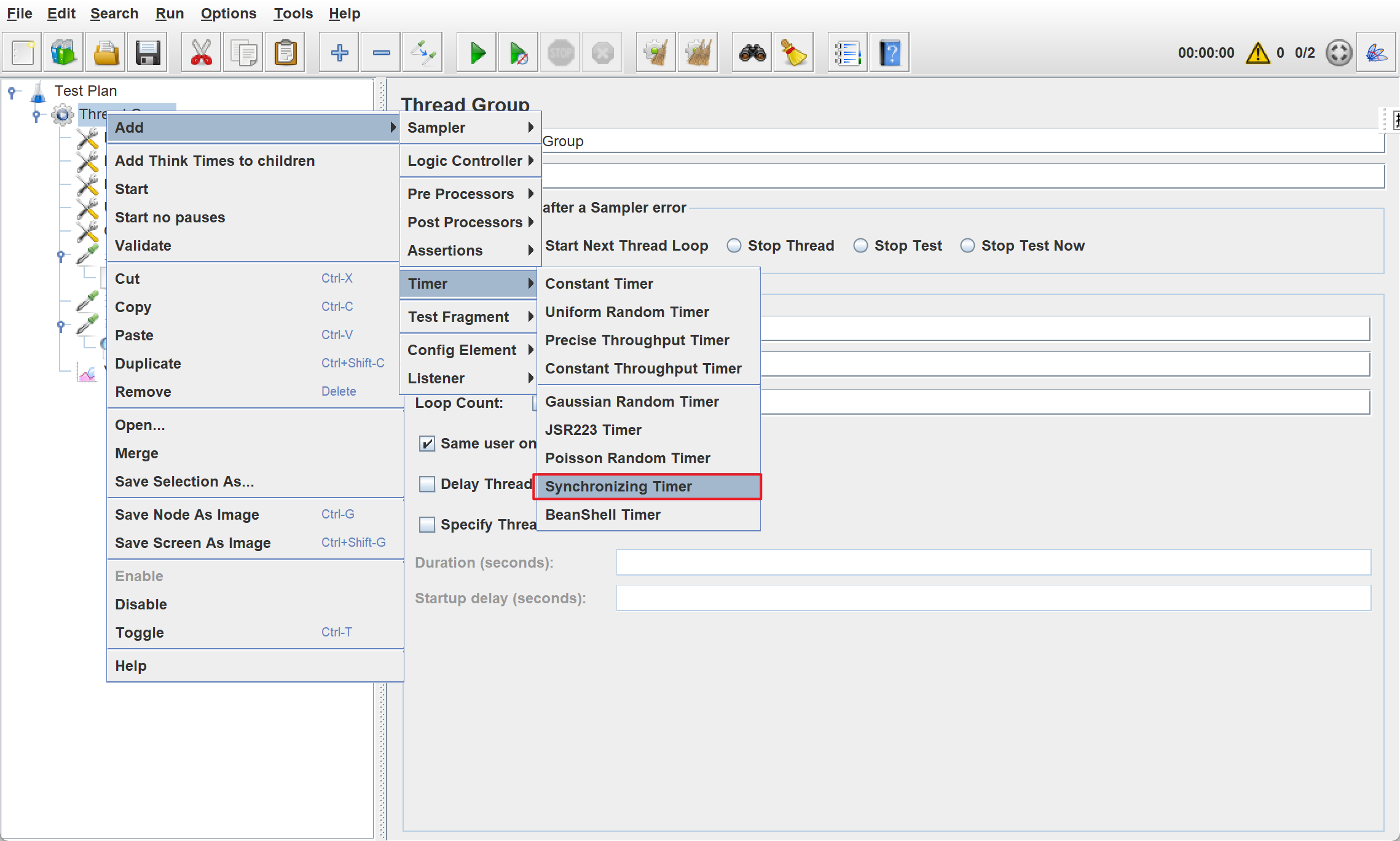 勾选InfInte的原因:当线程最终剩余的数量小于同步定时器设置的3时,就会一直等待,测试无法结束,因此设置无限循环保证一直都能有3个线程,测试可以正常结束;