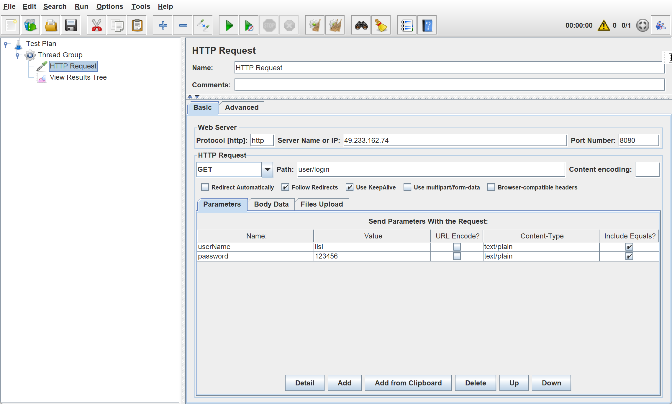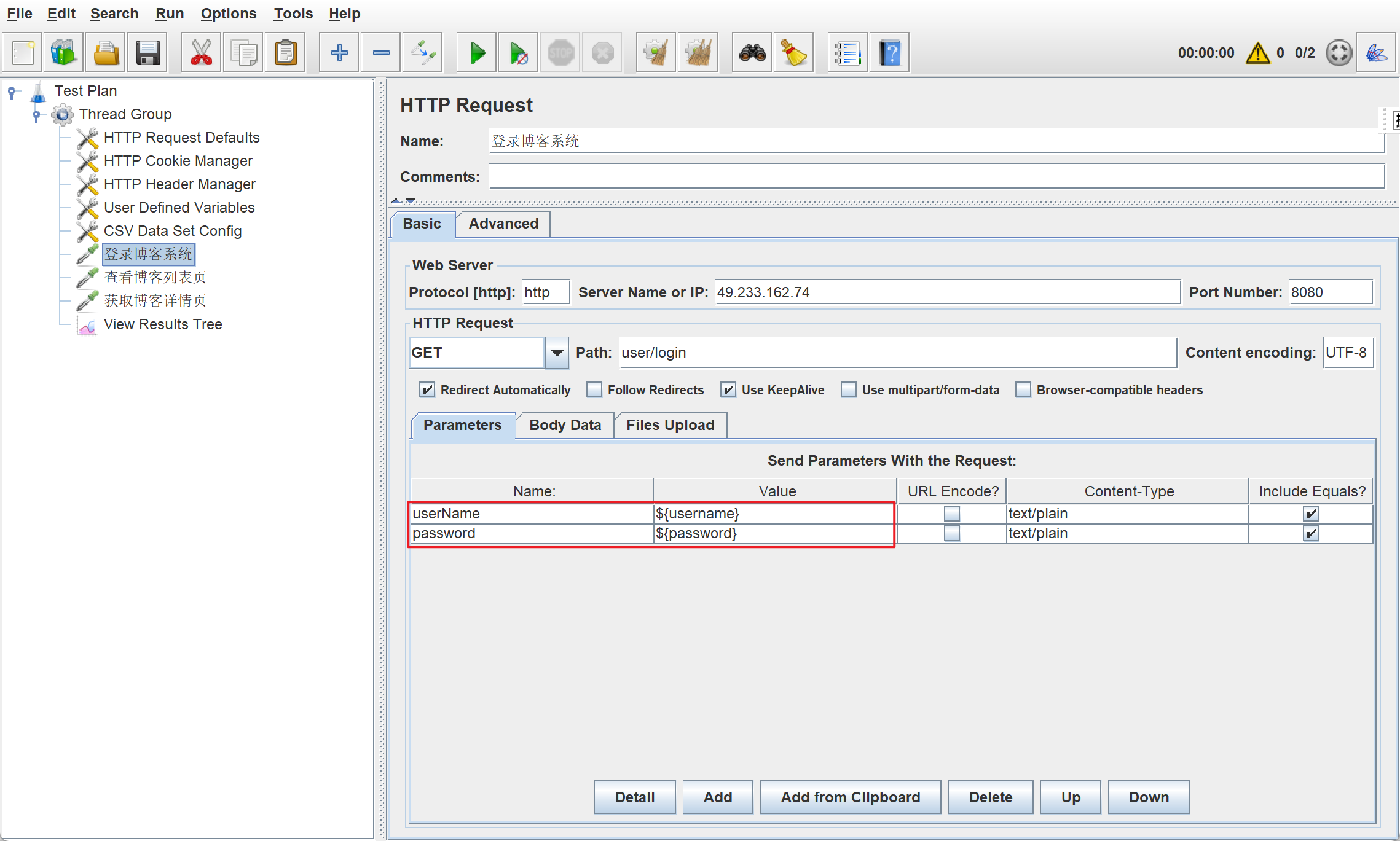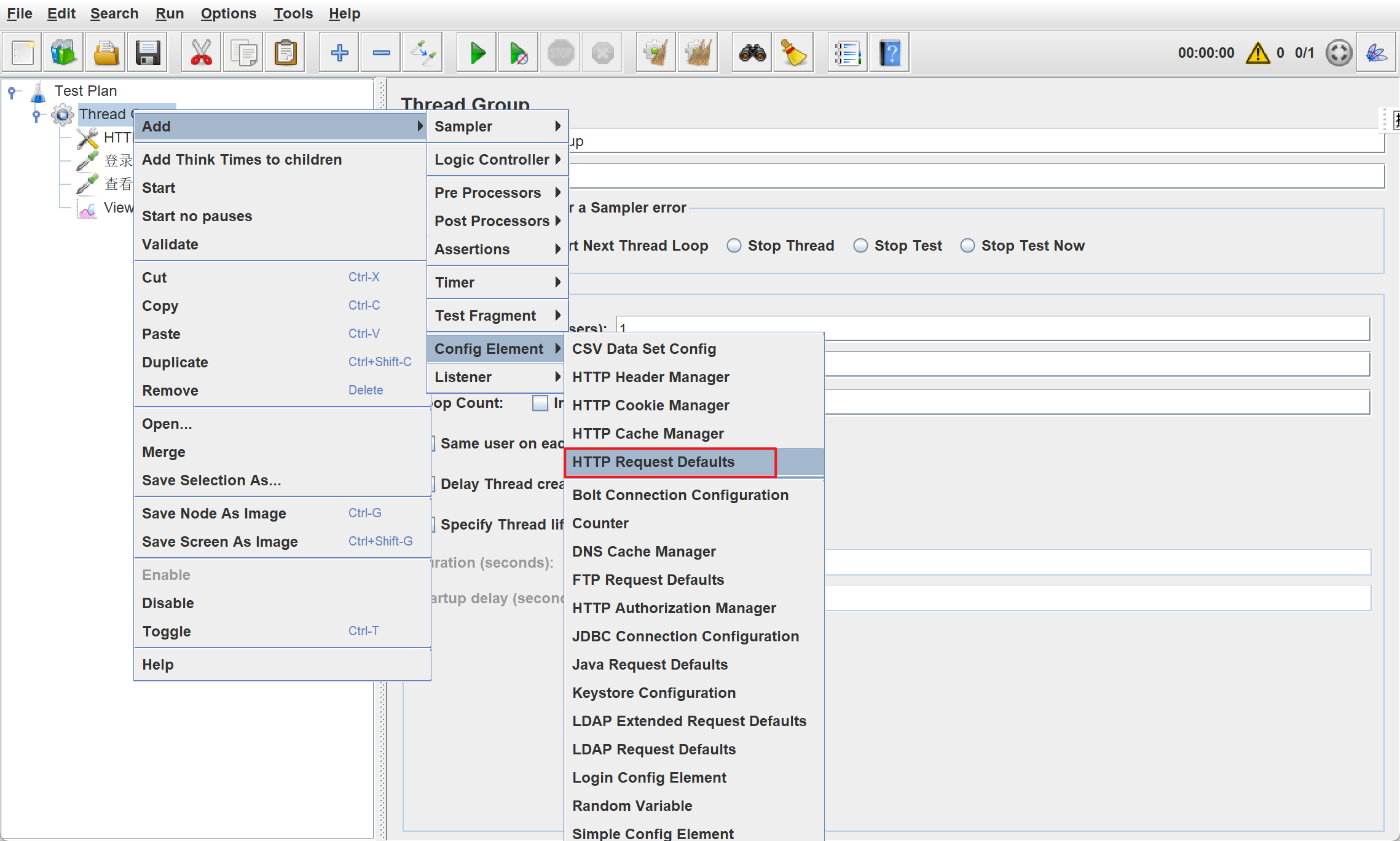 用于配置HTTP请求中的默认值,通常一个项目中,HTTP请求中的协议,IP地址和端口号都是相同的,配置了HTTP请求默认值,就不需要再在HTTP请求中配置,所有的请求都会使用这份默认值;