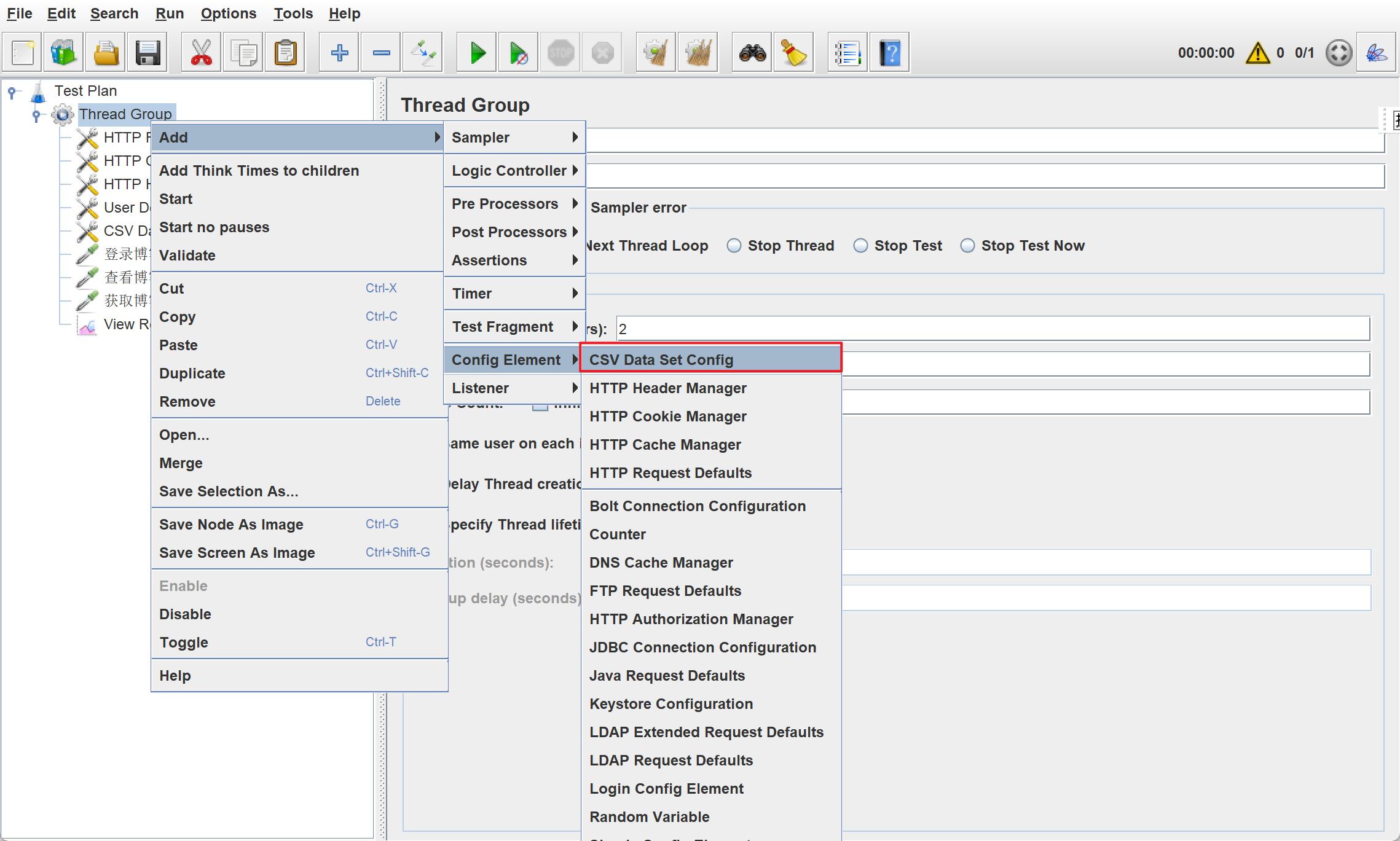 - Loop Count:表示线程要执行几个循环,例如配置2,就表示所有线程执行完一遍后,再执行一遍;