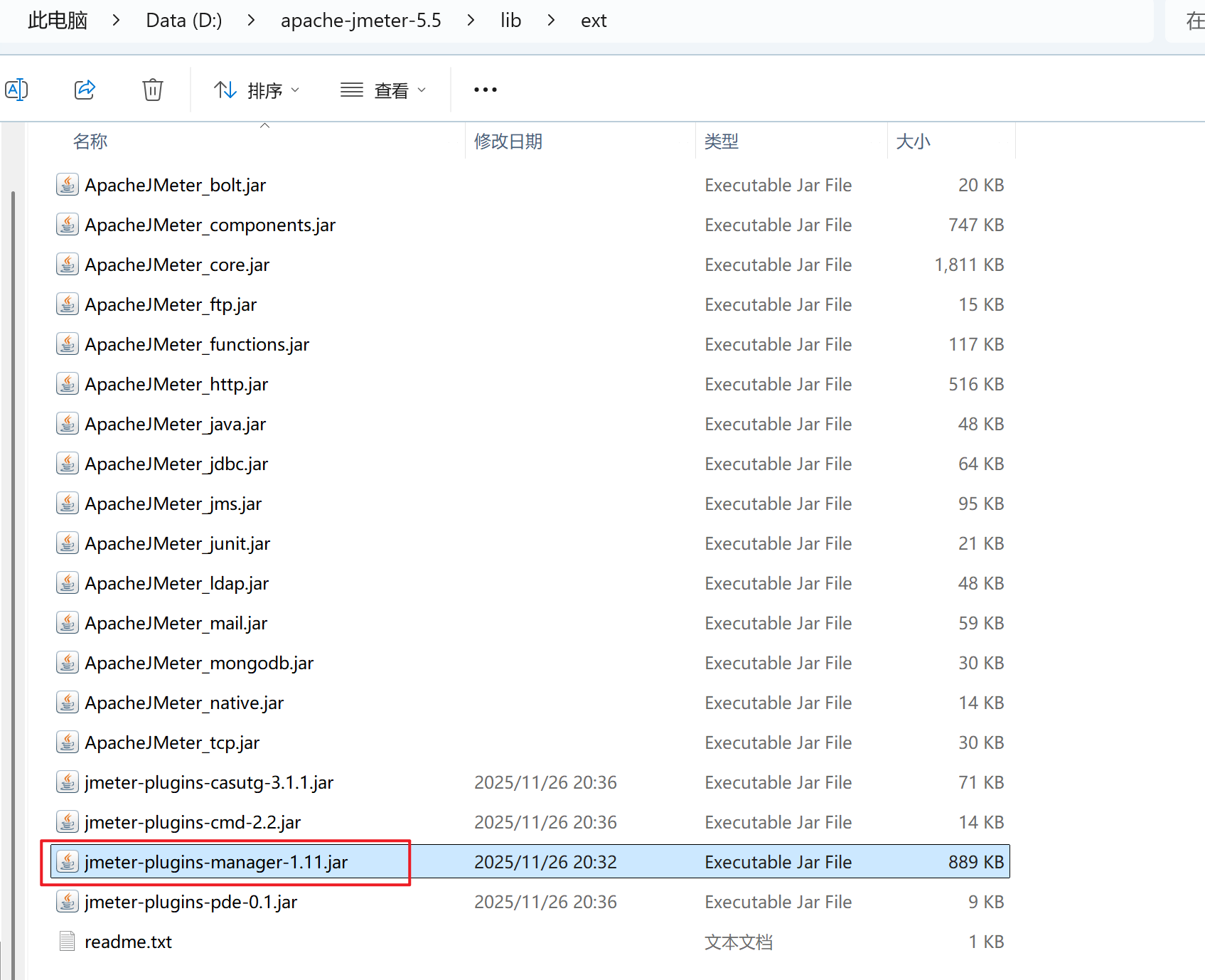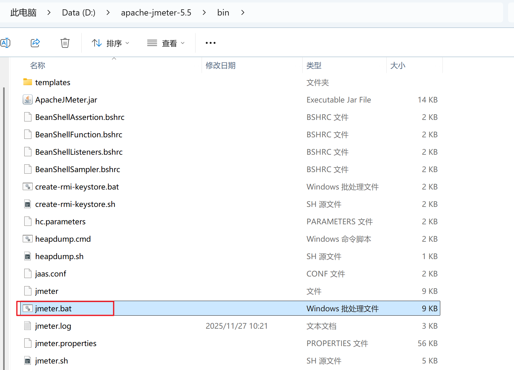 JMeter下载好后,无需安装,找到JMeter目录后,双击运行jmeter.bat文件即可;