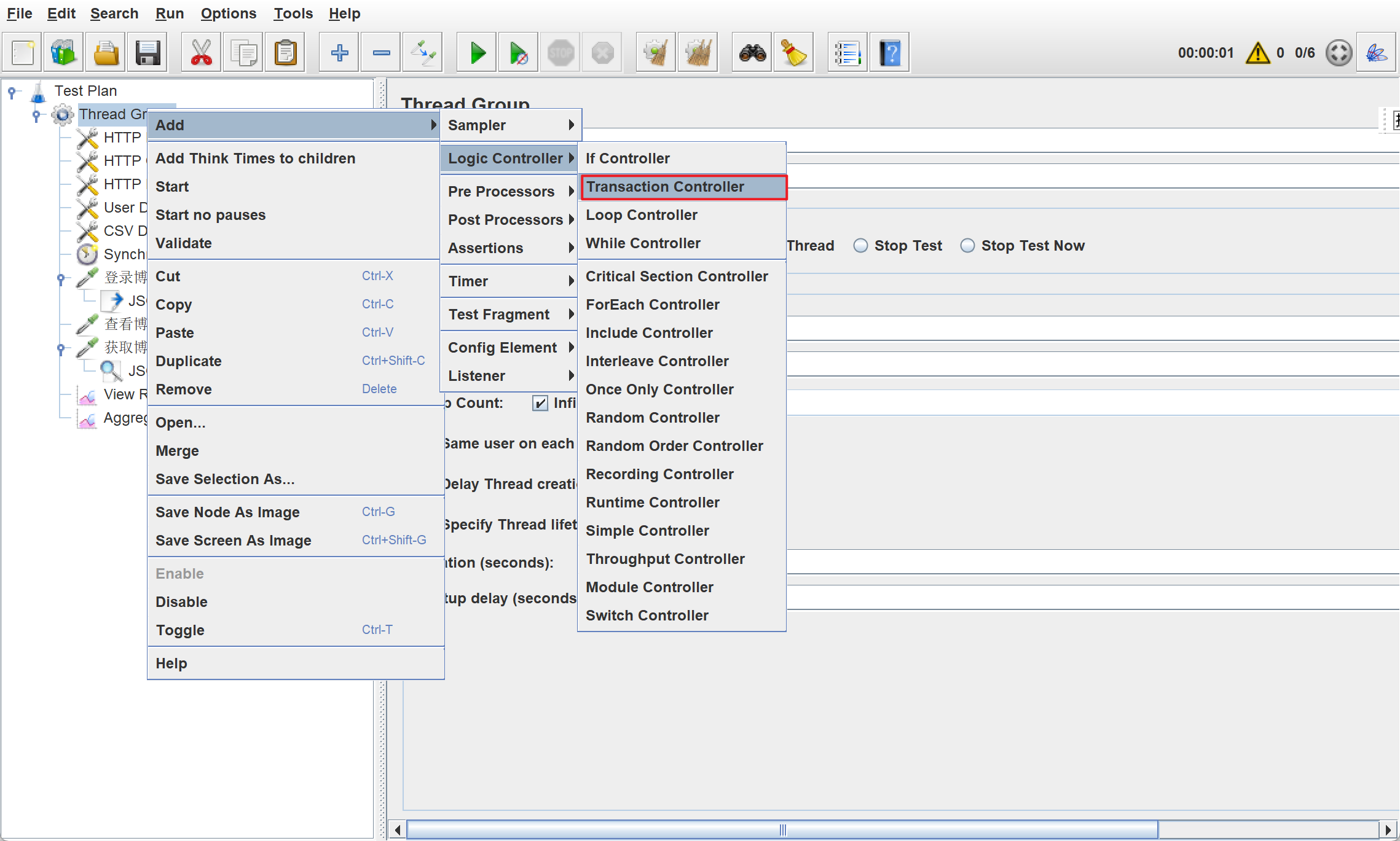设置线程组的线程数为6,并勾选InfInte,持续时间设置为1s: