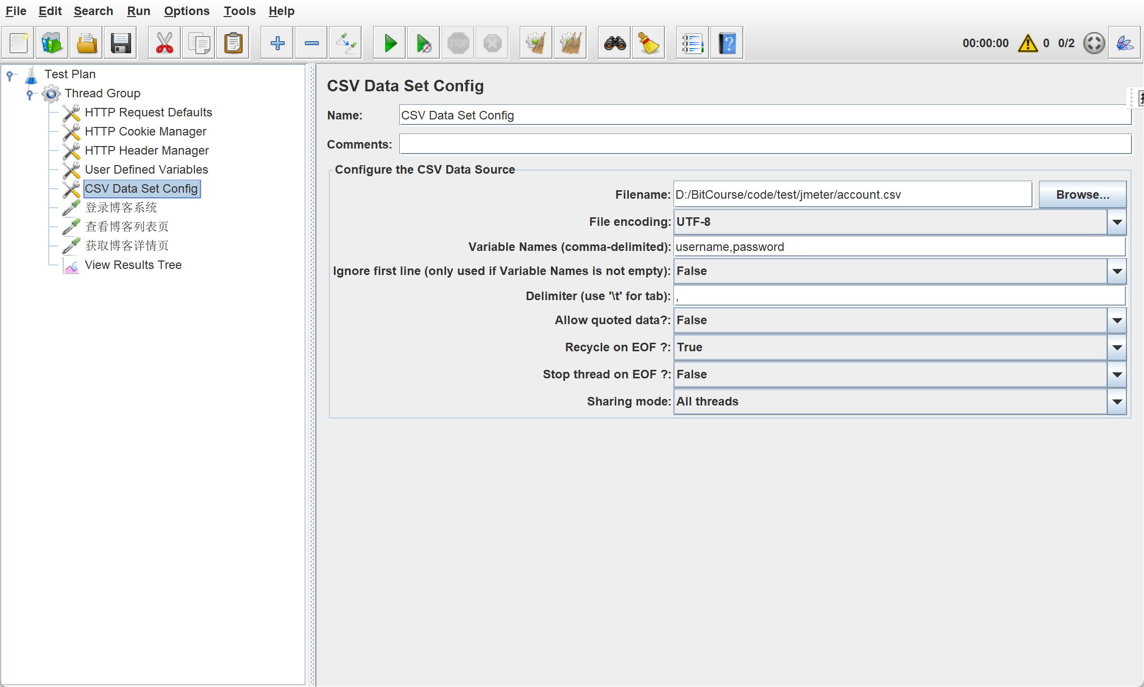 在JMeter中,每个线程都有自己的Cookie存储区,因此每个线程也都将拥有自己独立的会话;