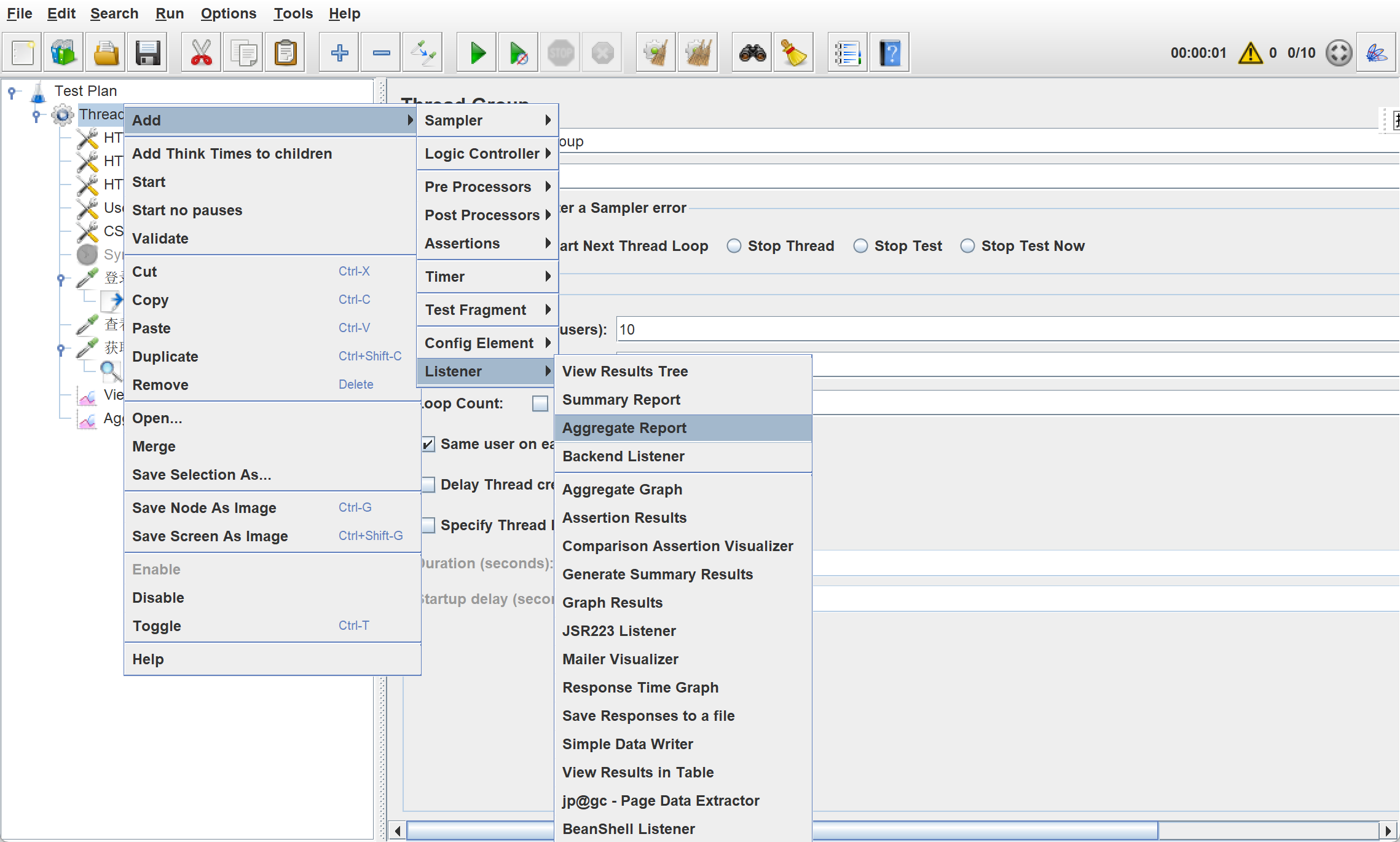 右键线程组,按照图示添加结果树,接口的响应信息都在结果树中进行查看;