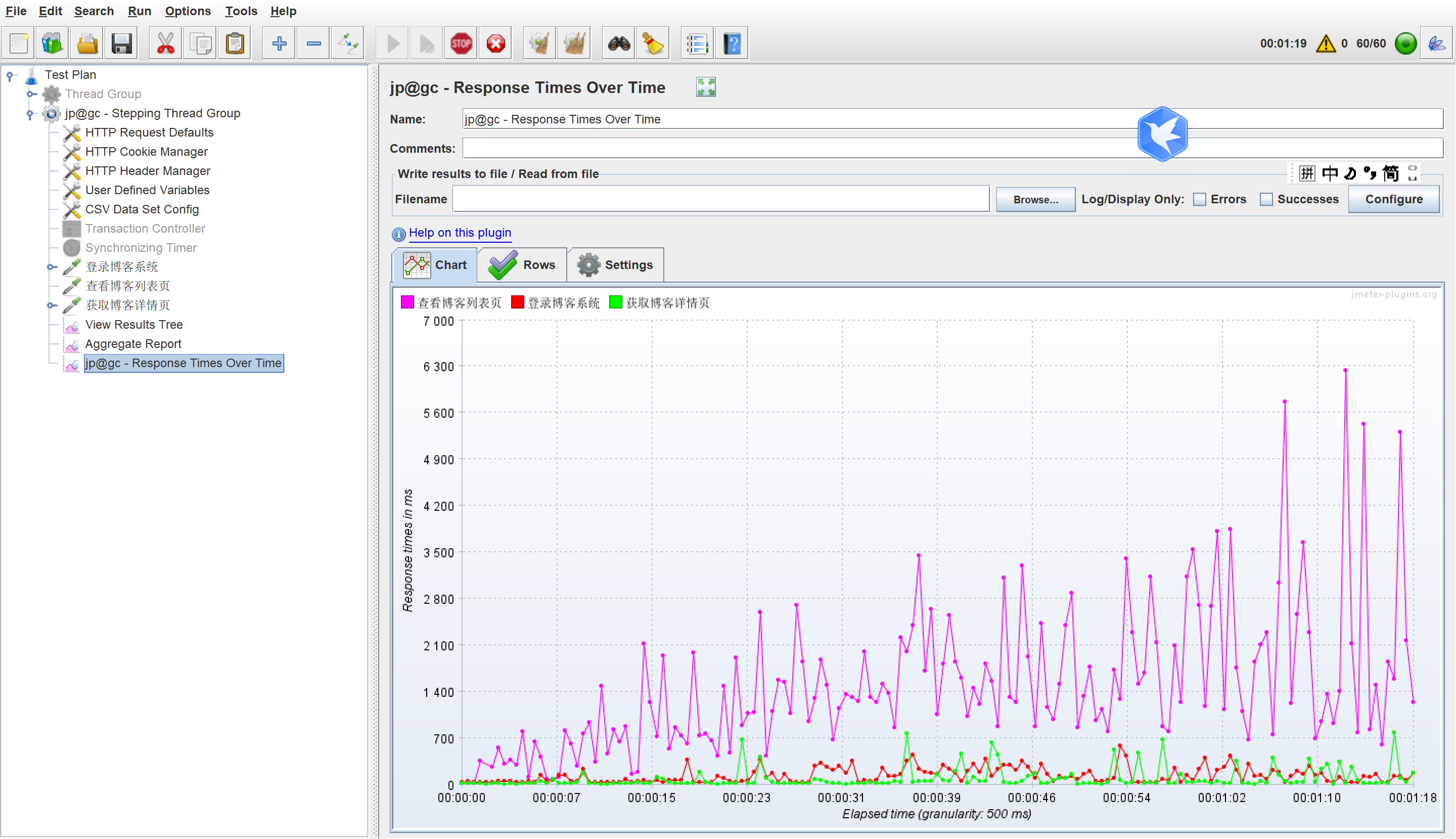 Response Times Over Time用于监听整个事务运行期间的响应时间;测试人员可以根据响应时间了解不同时间点的响应性能,从而发现可能存在的性能问题或瓶颈;