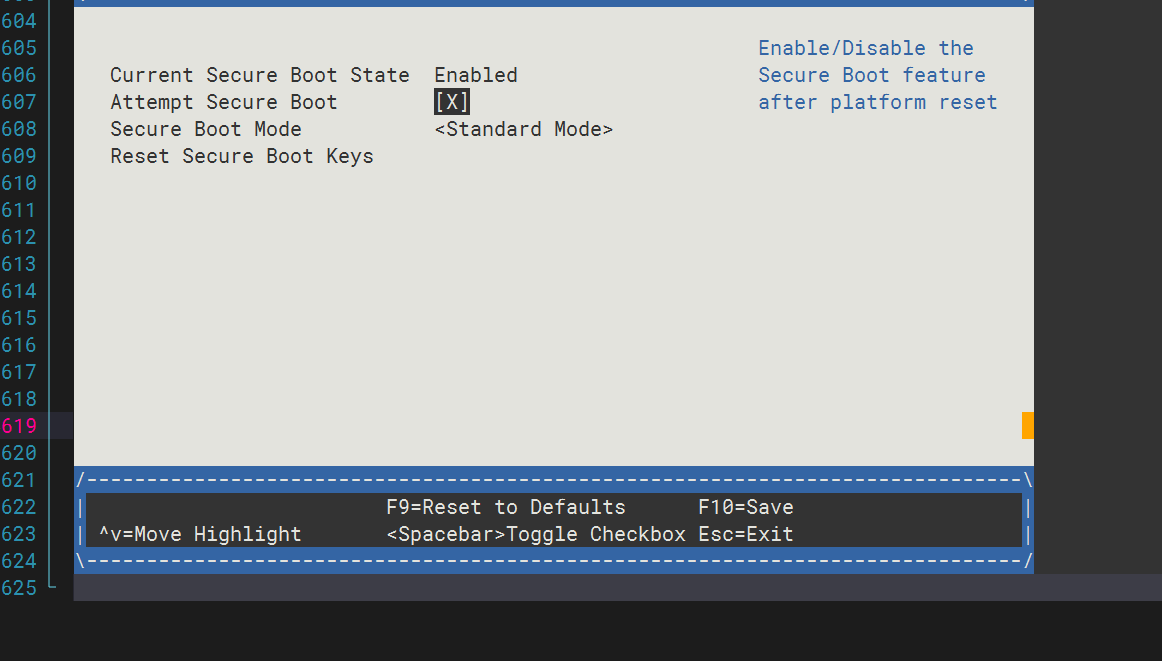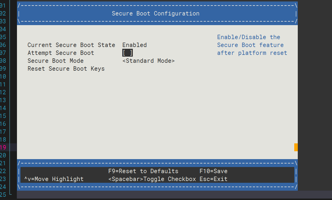 接着选择 Attempt Secure Boot [ X ]