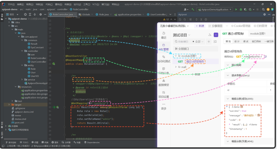 在IDEA里右键 → Upload to Apipost,3秒生成在线文档,前端、测试、产品同时收到通知,零等待。