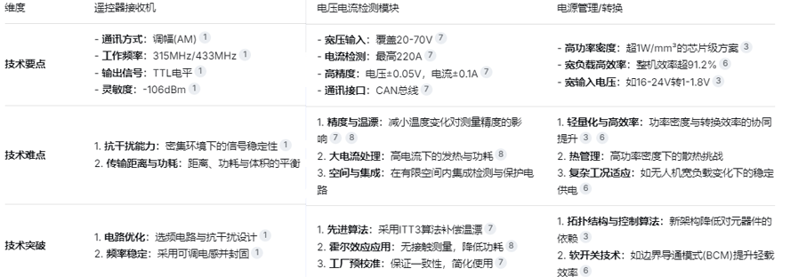电源模块的功率密度、效率与热管理:这是一个经典的三角难题。提升功率密度(小型化)通常意味着散热面积减小,可能导致元件温度升高,而高温往往会降低转换效率。同时,为应对无人机宽范围的负载变化,电源需要在从极轻载到重载的整个范围内都保持高效率,技术挑战很大。
