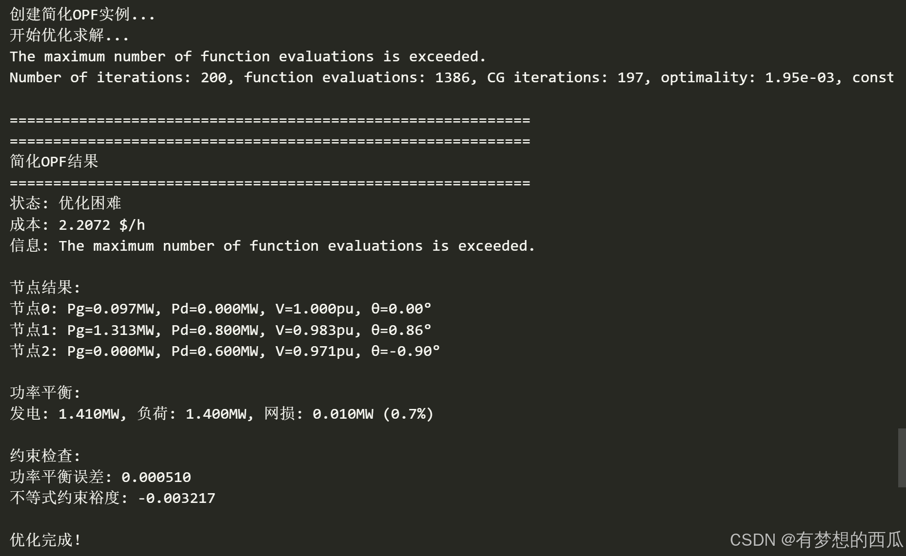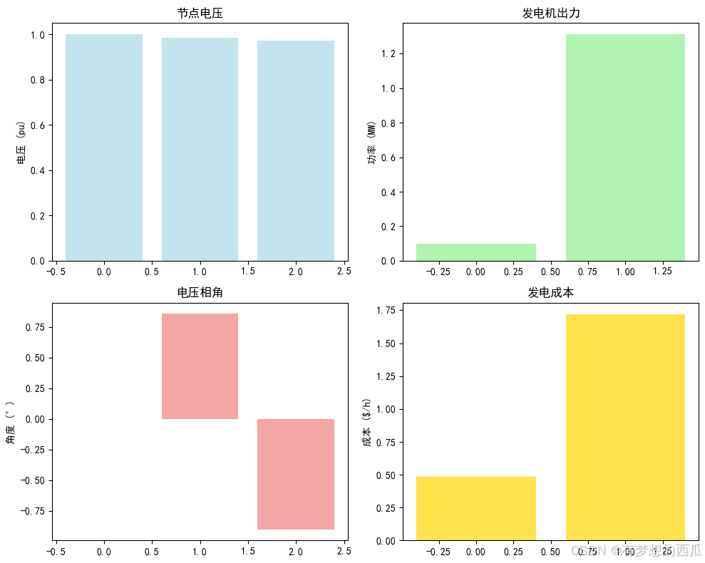 print(f"节点{i}: Pg={Pg[i]:.3f}MW, Pd={Pd[i]:.3f}MW, "