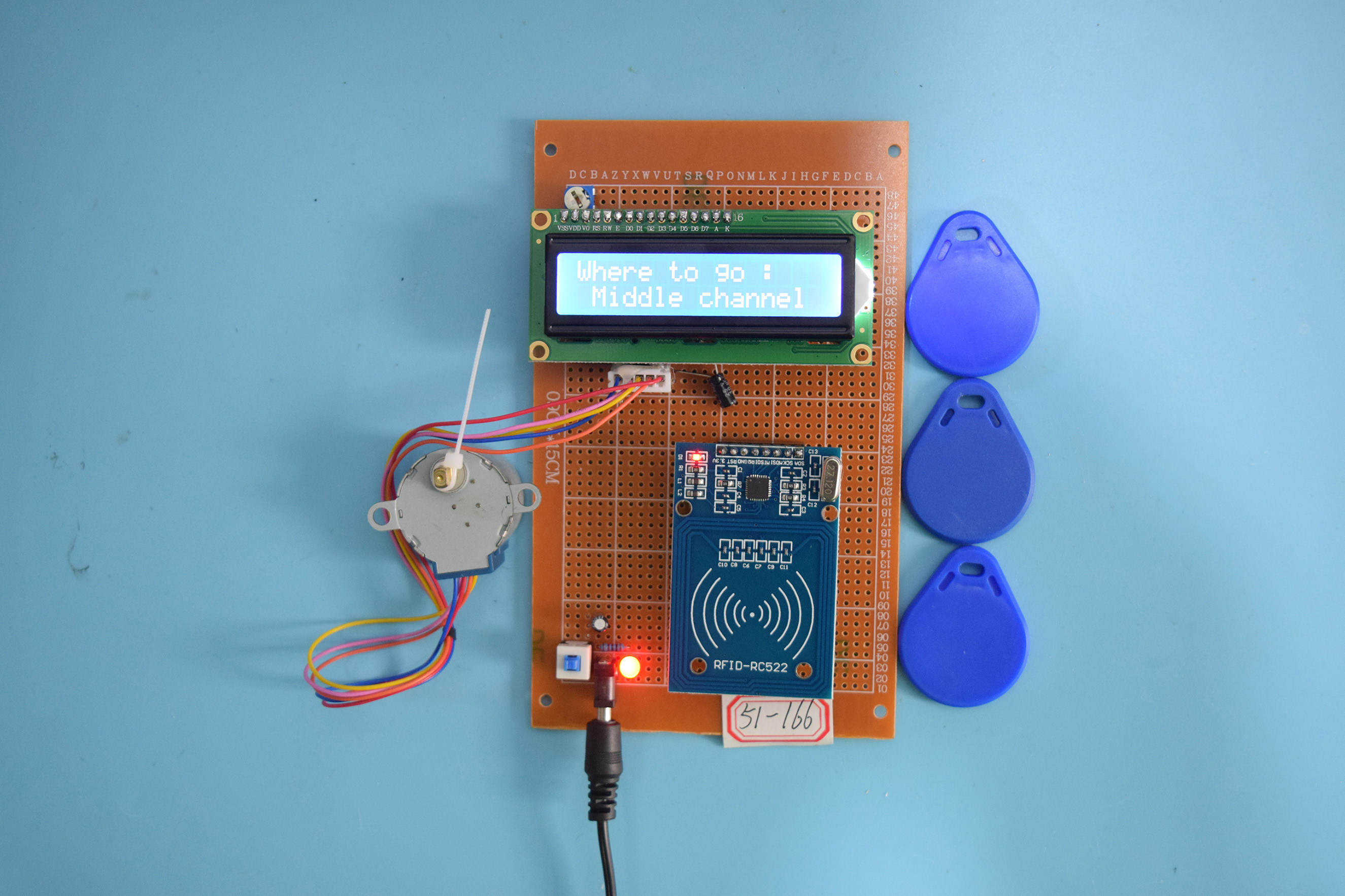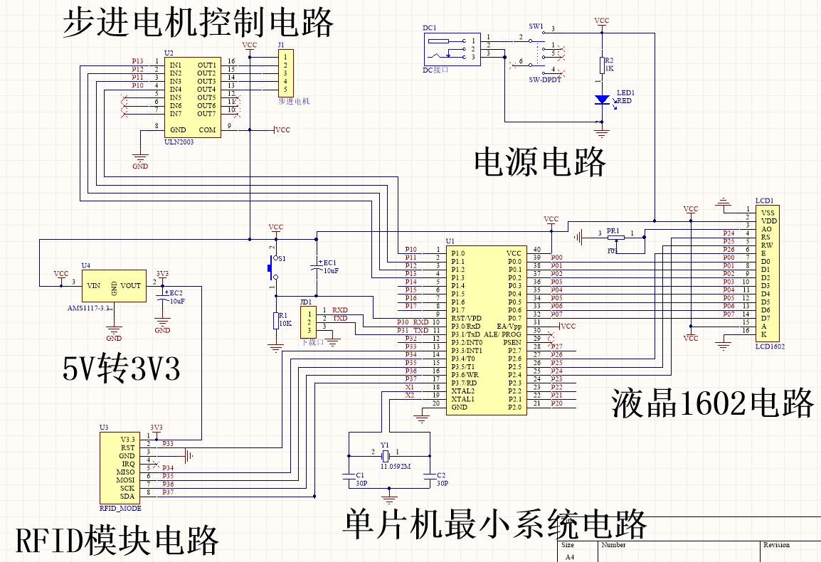 本系统由STC89C52单片机、ULN2003步进电机驱动、RFID读卡器模块、