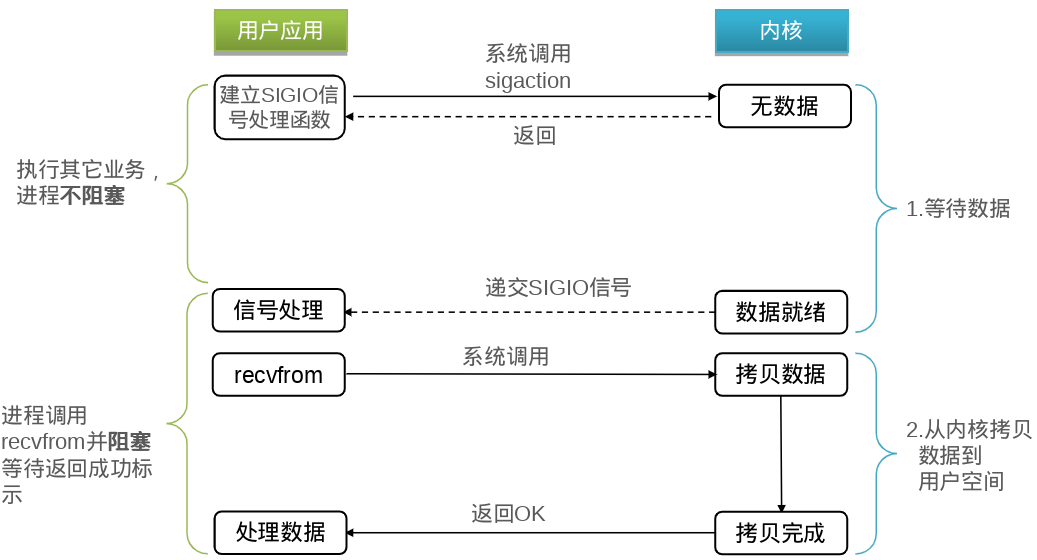 - 当内核数据就绪后,回调用户进程的SIGIO处理函数