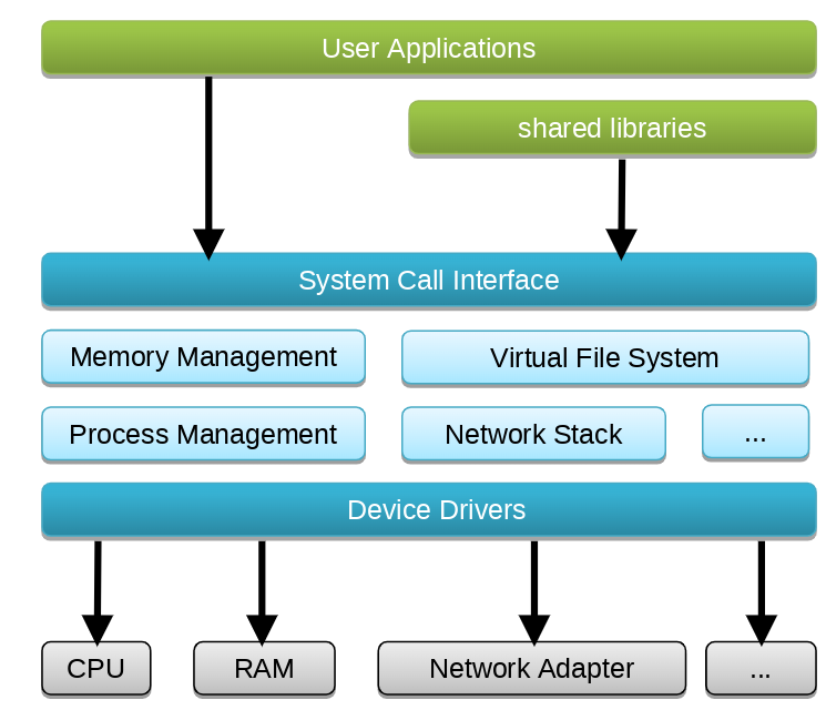 - 为了避免用户应用导致冲突甚至内核崩溃,用户应用与内核是分离的: