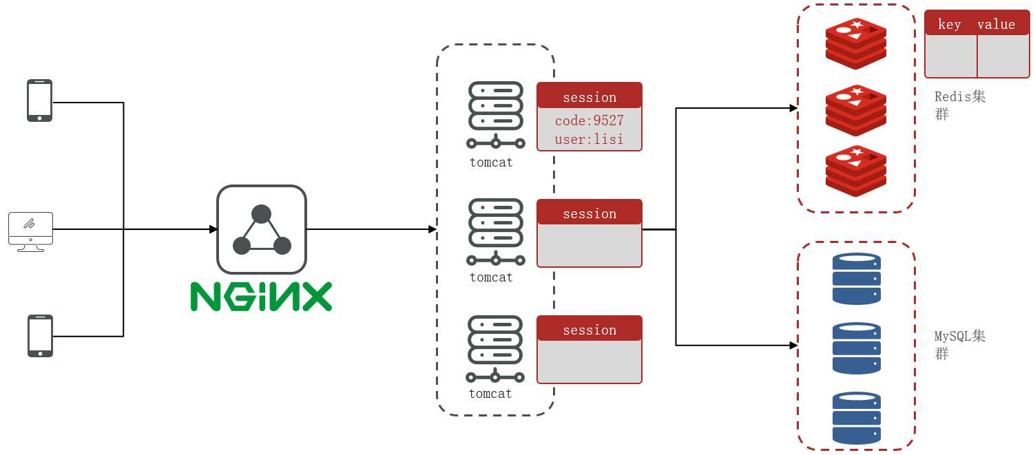 每个tomcat中都有一份属于自己的session,假设用户第一次访问第一台tomcat,并且把自己的信息存放到第一台服务器的session中,但是第二次这个用户访问到了第二台tomcat,那么在第二台服务器上,肯定没有第一台服务器存放的session,所以此时整个登录拦截功能就会出现问题。