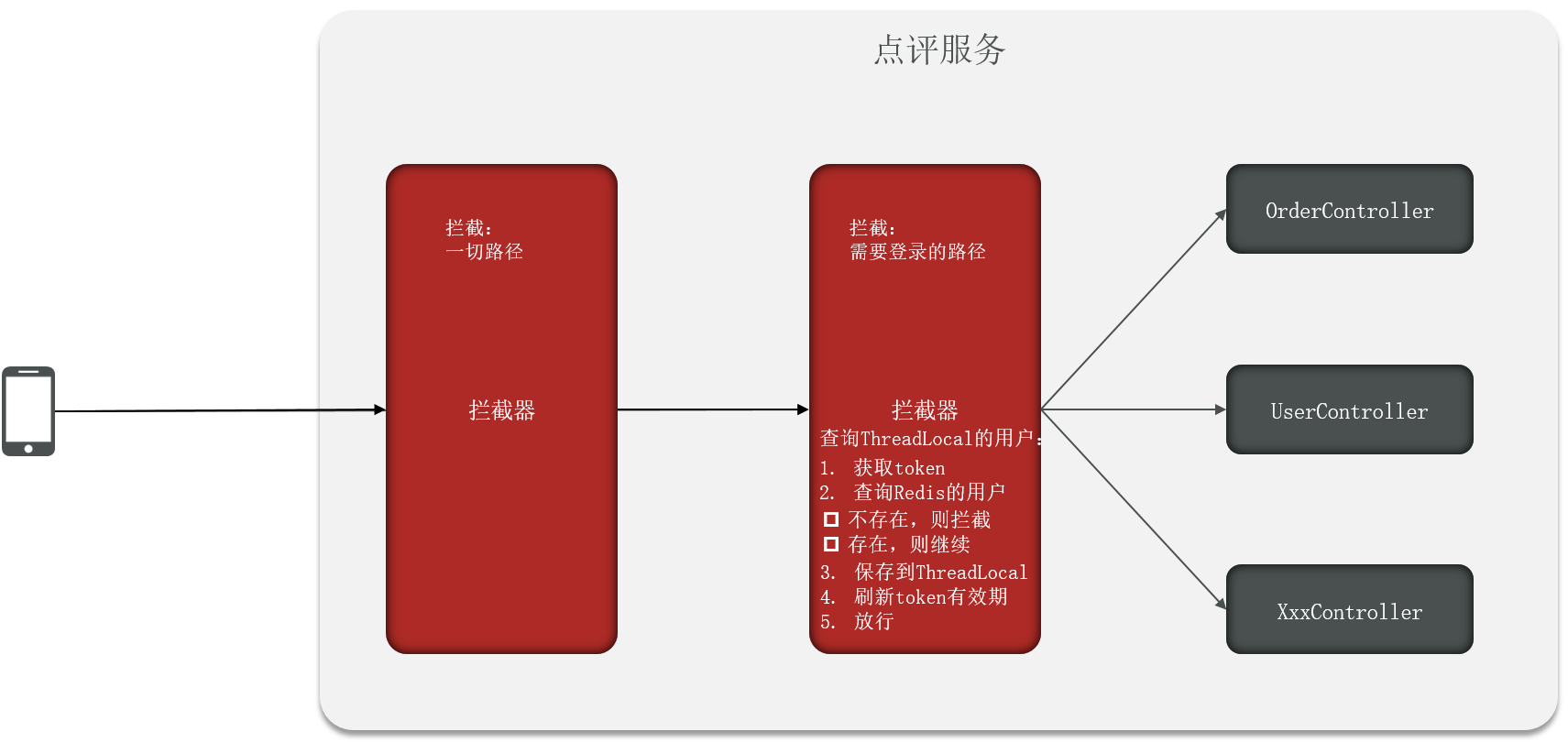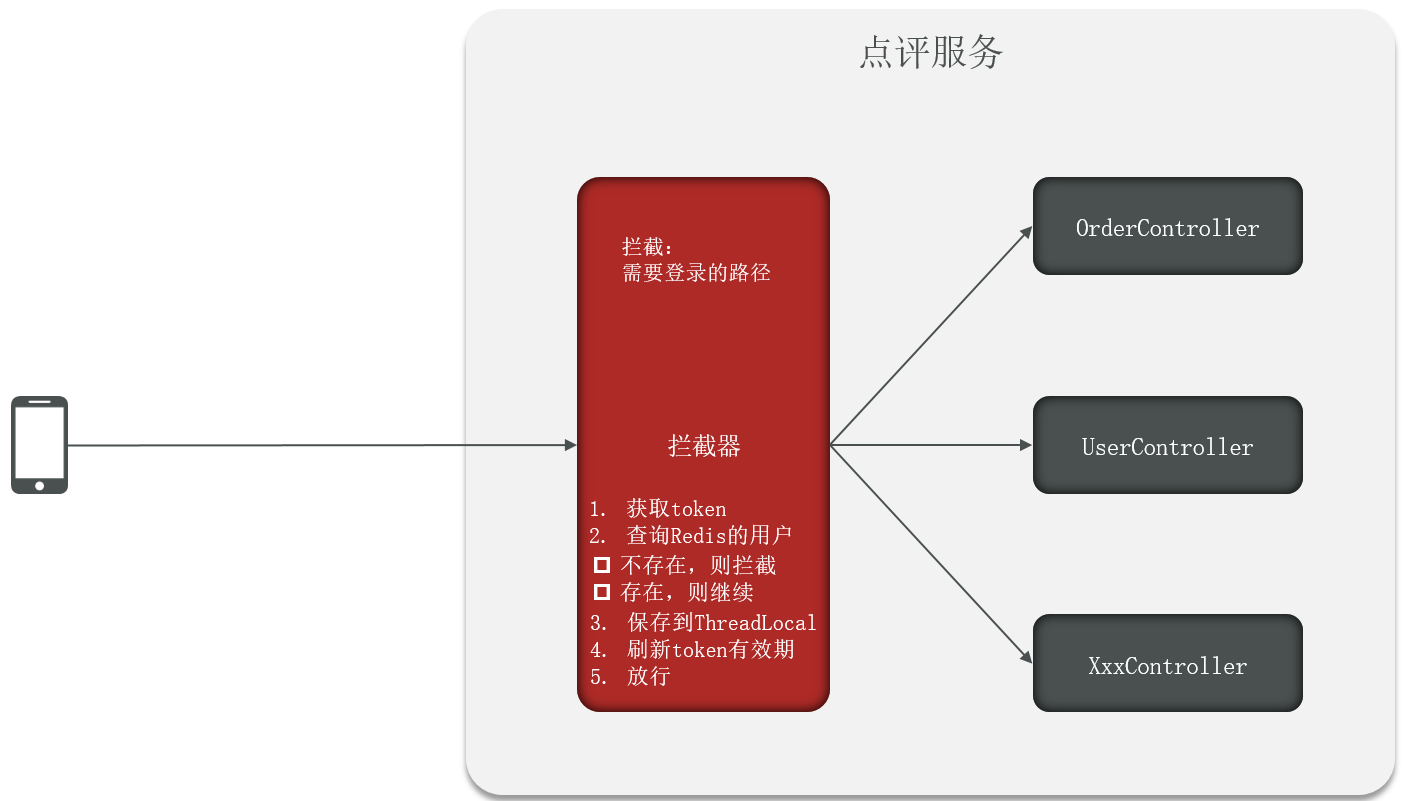 当我们校验用户是否登录时,会去携带着token进行访问,从redis中取出token对应的value,判断是否存在这个数据,如果没有则拦截,如果存在则将其保存到threadLocal中,并且放行。