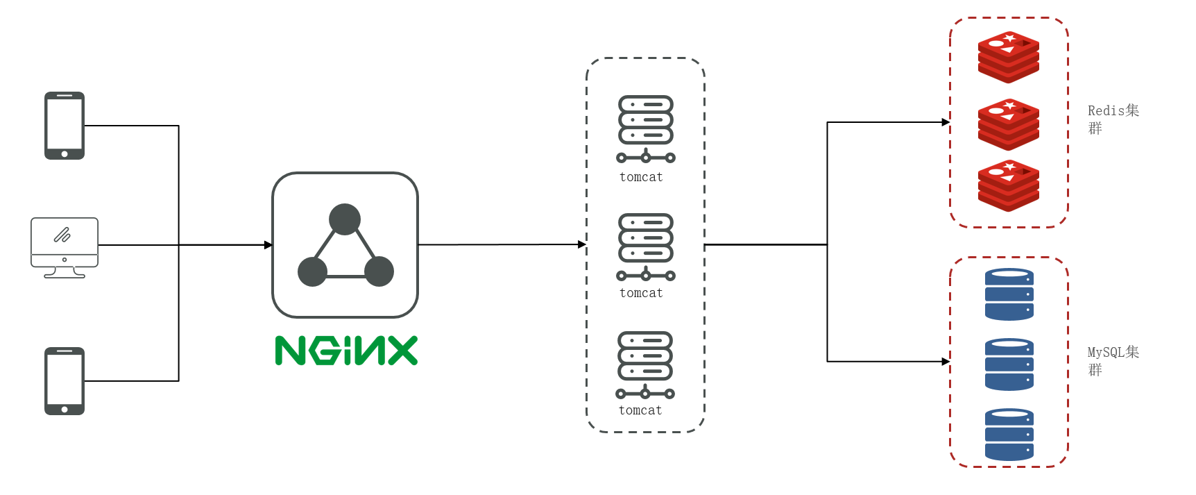 手机或者app端发起请求,请求我们的nginx服务器,nginx基于七层模型走的事HTTP协议,可以实现基于Lua直接绕开tomcat访问redis,也可以作为静态资源服务器,轻松扛下上万并发。