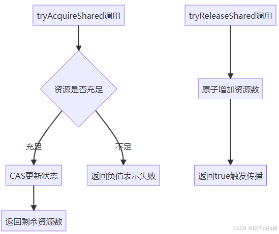 共享模式的核心特性是"传播"------当一个线程释放资源时,可能需要唤醒多个等待线程。这种传播行为通过返回值来协调: