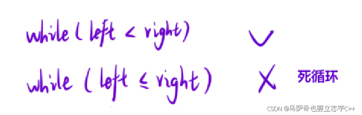根据我们前面对求中点方式的讨论,我们知道循环退出条件必须是left < right,否则会出现死循环。