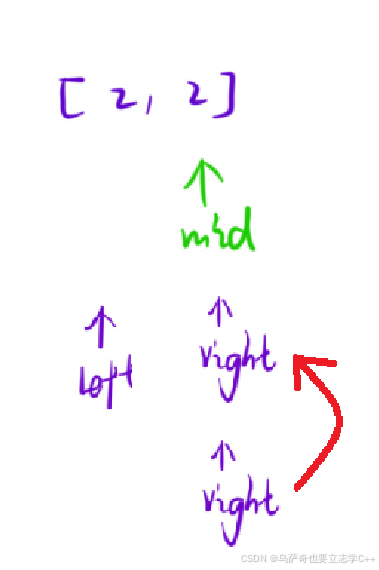 left = mid + 1,这时left和right就成功重合了,达到了循环退出的条件,所以重合后就需要退出循环了。