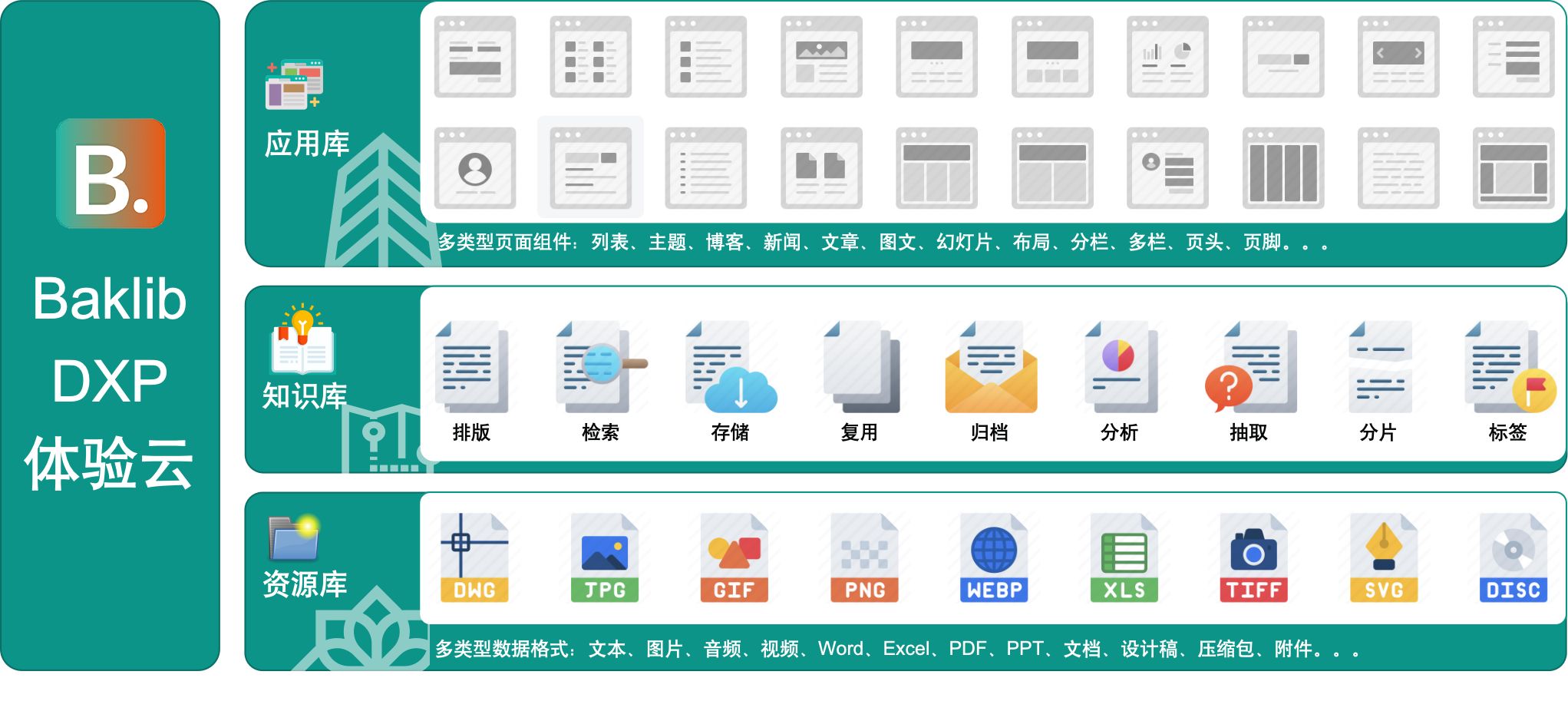 为了提升数字化效率,越来越多企业选择通过 Baklib 数字内容体验云平台 来构建员工手册。Baklib 以资源库+知识库+应用库的三层架构,帮助企业将手册内容在线化、结构化,并与外部系统(如帮助台、AI知识库、协作工具、翻译服务)无缝连接,让知识在组织内部自然流动。
