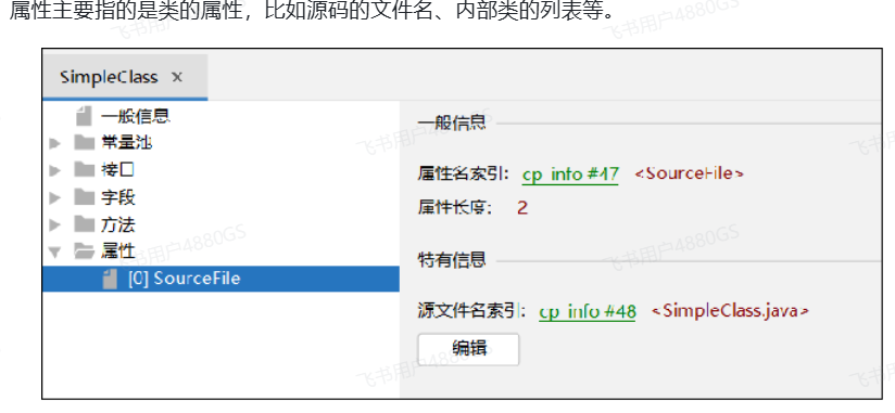 - 属性: 类的属性,比如源码的文件名、内部类的列表等