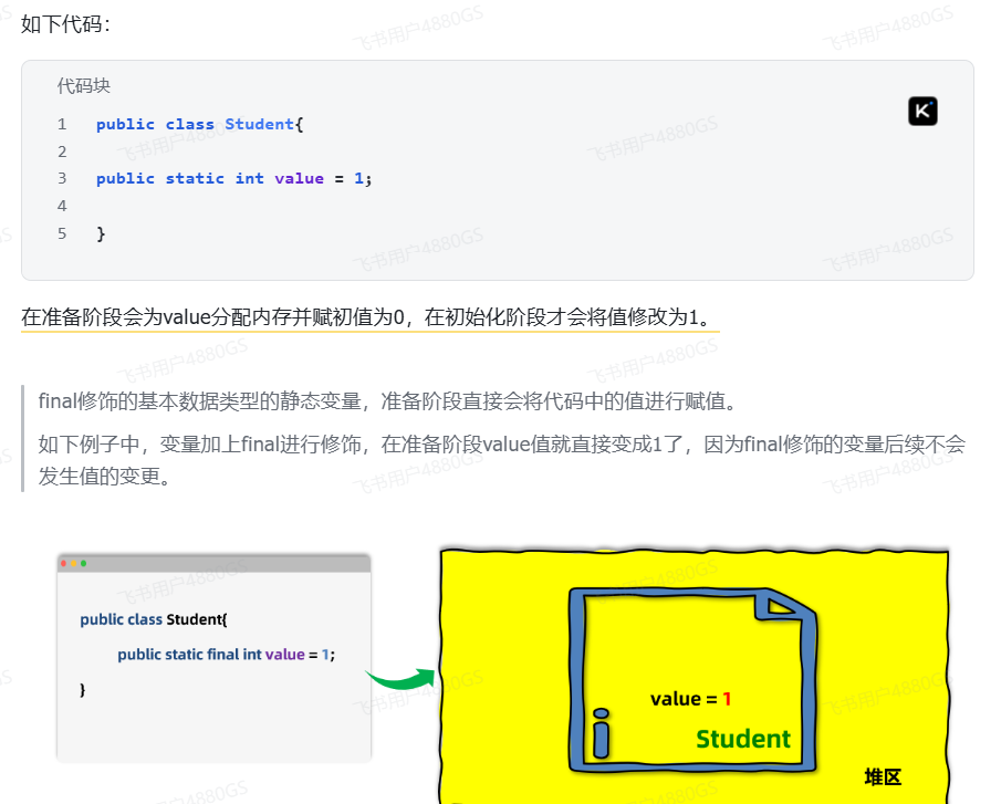准备阶段为静态变量(static)分配内存并设置初值,每一种基本数据类型和引用数据类型都有其初值。