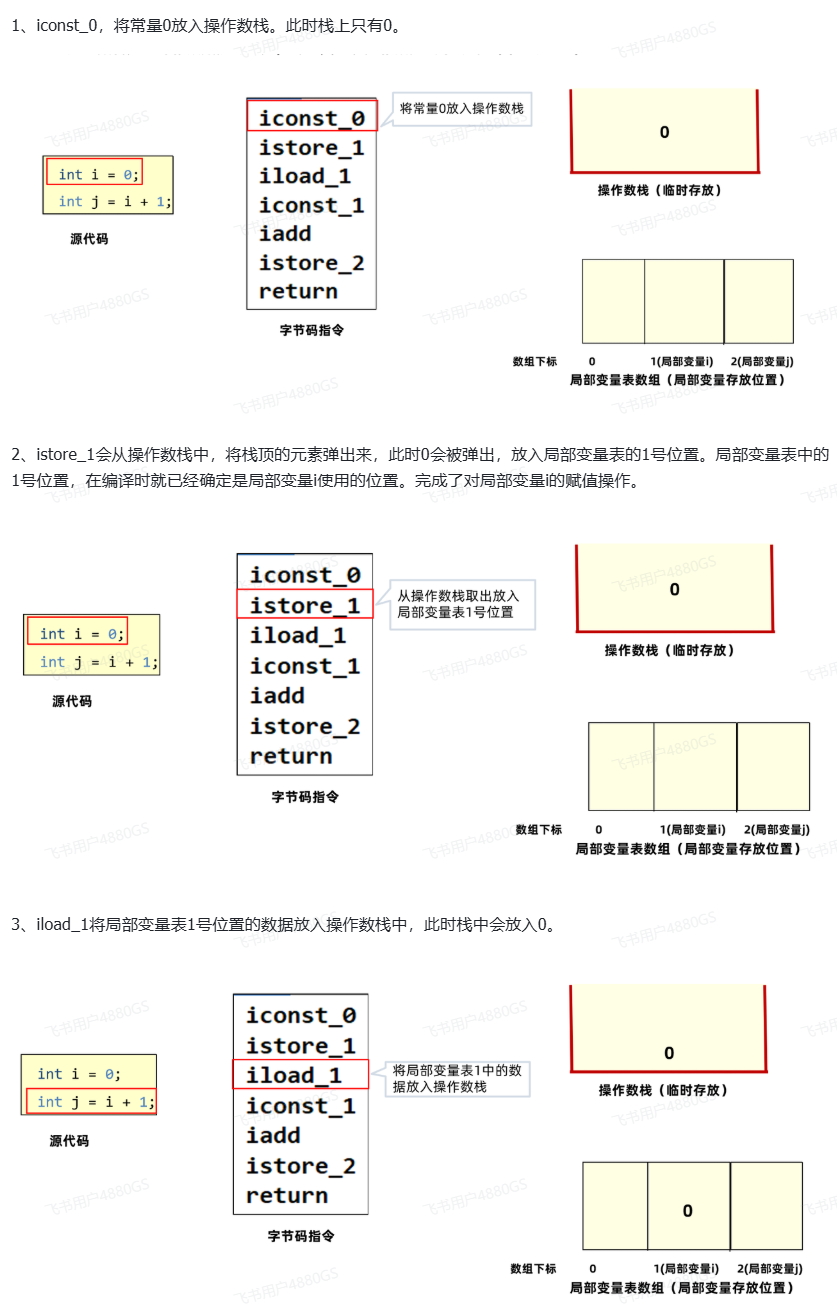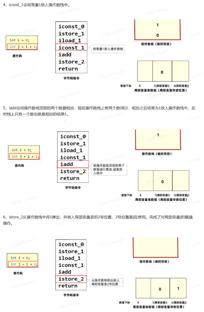 要理解这段字节码指令是如何执行的,我们需要先理解两块内存区域:操作数栈和局部变量表。