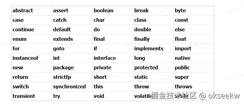 - 关键字是 Java 语言的核心词汇,掌握它们是学习 Java 的基础。
