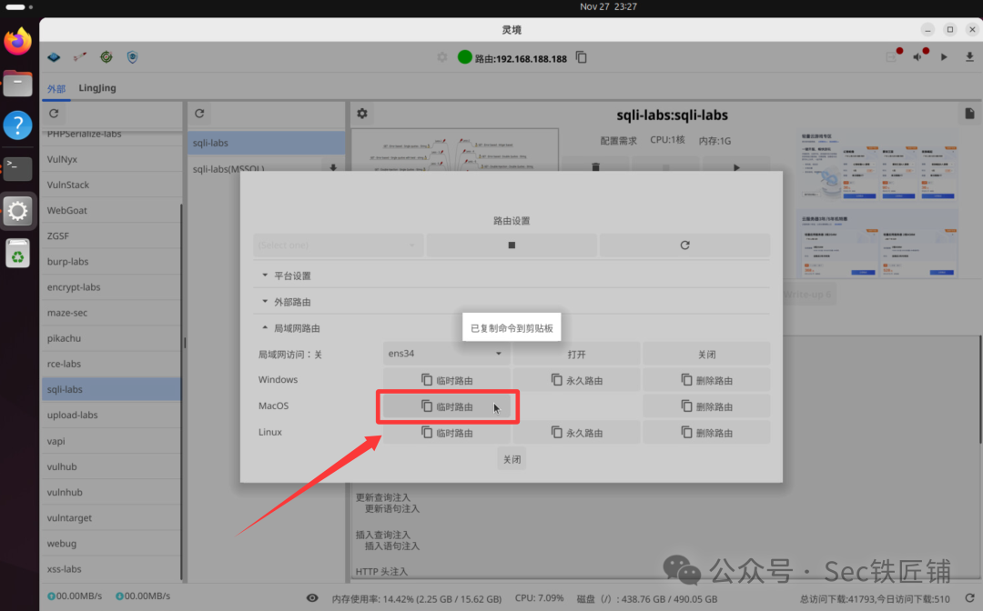 5、给局域网对应系统复制路由命令