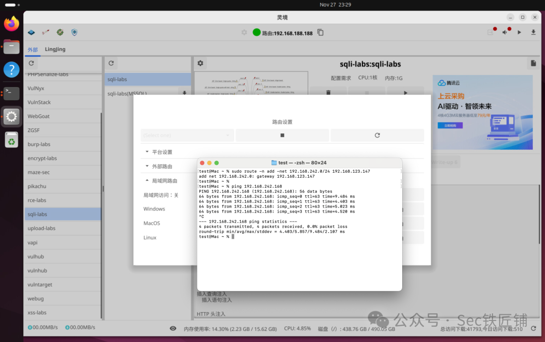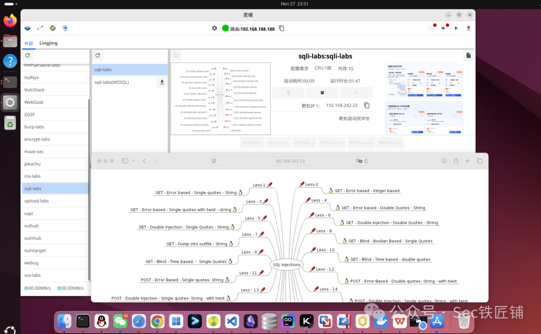 LingJing 是一款桌面级本地网络靶场:在线拉取靶机镜像,无需手动配置虚拟网络;一键拉起跨架构靶机,内置路由与流量可视化,M 系列 Mac 也能运行 AMD64 镜像,即将补齐内置攻击机,零配置完成从入门到红蓝对抗的全流程演练,为网络安全学习者和从业者提供一个高效、真实的实战训练环境,助力每一位用户在网络安全领域快速成长。