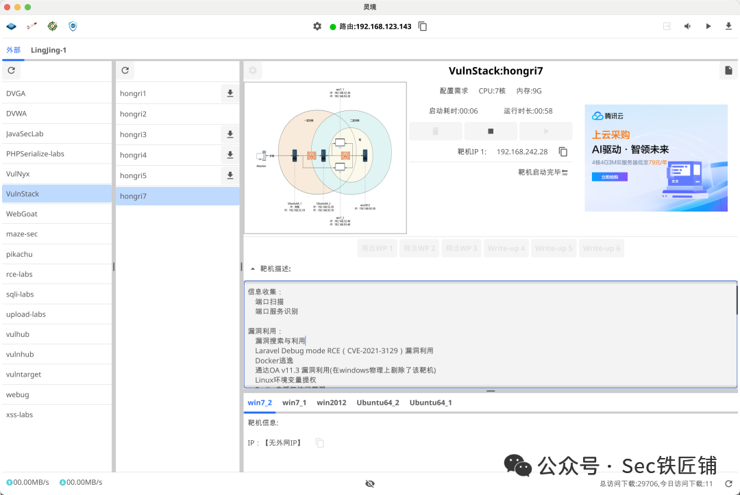 一键拉取、零配置,靶机 5--30 秒就绪(域控场景需额外建联时间,视物理机性能浮动)。