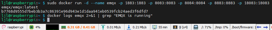 实测部署 EMQX 需要至少 400MB 存储空间。