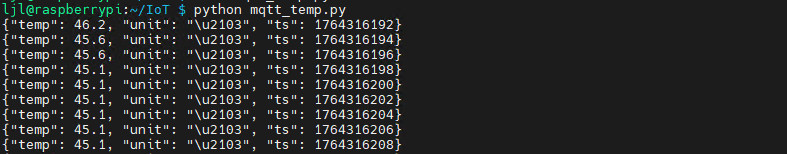 payload = json.dumps({"temp": temp, "unit": "℃", "ts": int(time.time())})