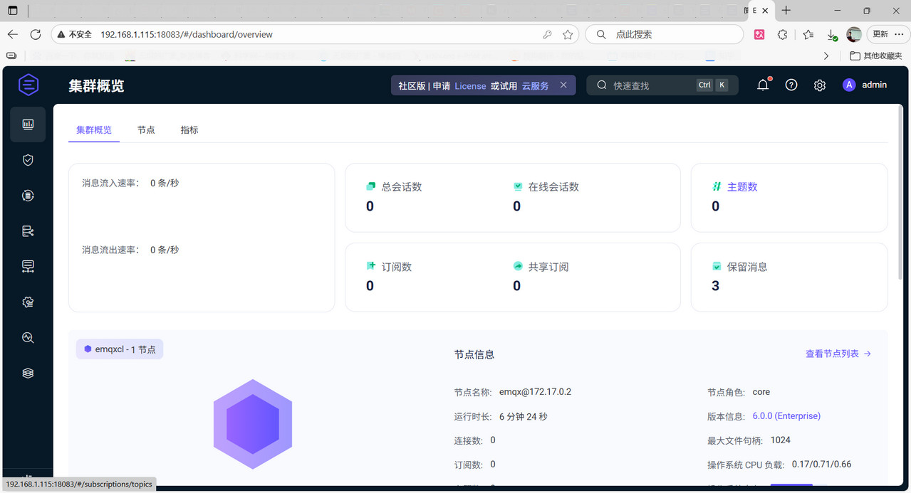 http://<树莓派IP>:18083,如http://192.168.1.115:18083; - 进入 EMQX 界面,初始账号