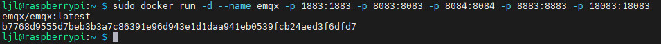 docker run -d --name emqx -p 1883:1883 -p 8083:8083 -p 8084:8084 -p 8883:8883 -p 18083:18083 emqx/emqx:latest