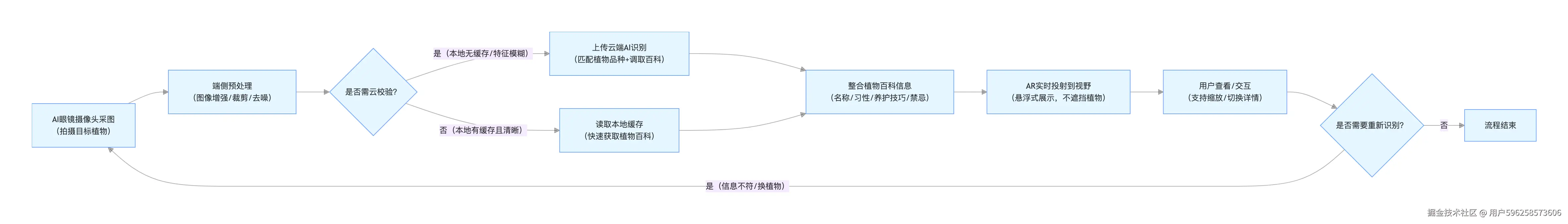 这方案的核心,其实是用 AI 给眼镜 "加 buff"------ 它不是多出来的工具,而是眼镜本身的功能延伸:就像眼镜帮人看清物体轮廓,AI 帮人 "读懂" 植物的底细。