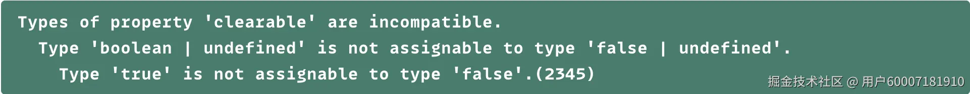 这看起来比之前更复杂,但值得我们付出这些努力。现在,TypeScript 能根据 clearable 标志区分联合类型:当该标志传递为 true 时,onChange 接收的结构与传递 false 或未传递时不同。提取到 BaseSelectProps 的操作只是为了避免重复联合类型中两部分相同的类型声明。