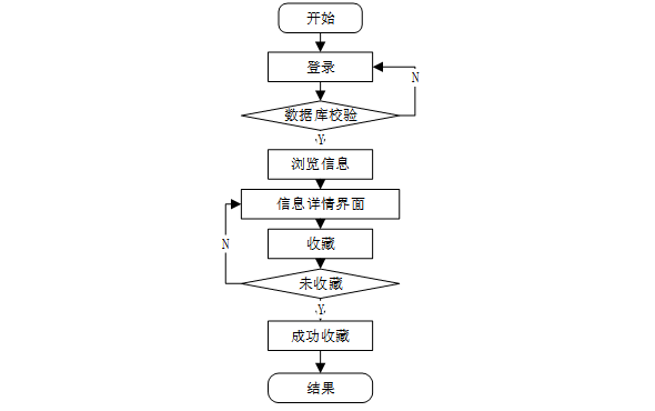 在微信小程序的学习交流平台中,用户登录后,浏览课程信息、考试、互动交流、奖励活动等详情界面能进行信息收藏,用户收藏信息的流程图如图3-5所示: