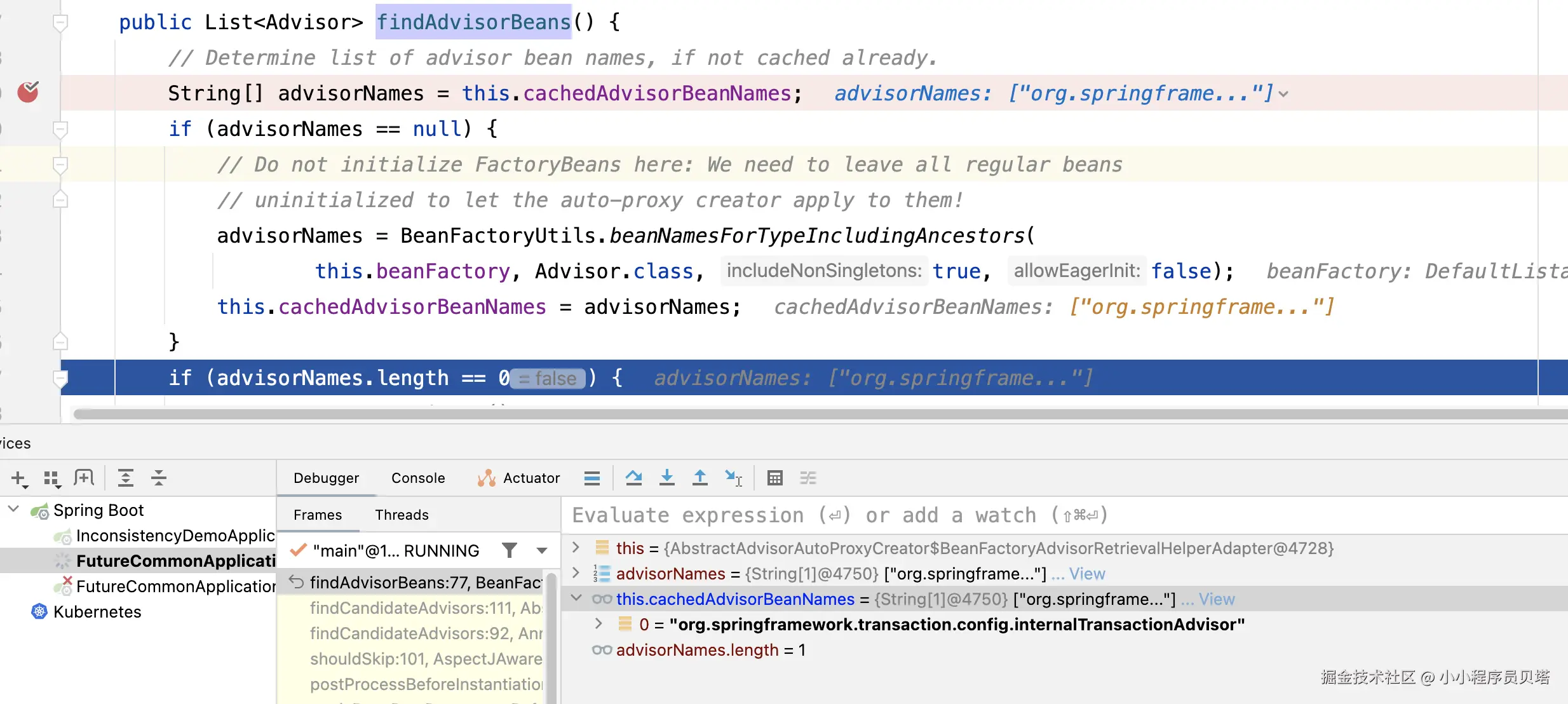 List<Advisor> eligibleAdvisors = findAdvisorsThatCanApply(candidateAdvisors, beanClass, beanName);