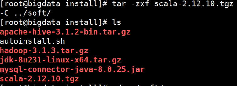 2. 上传Scala 的tgz 包到install 目录(通过WinSCP去上传)