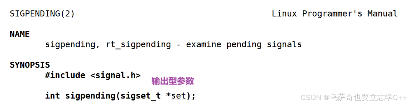 它是获取当前进程pending表的系统调用接口,它会把当前进程的pending表通过输出型参数带出。