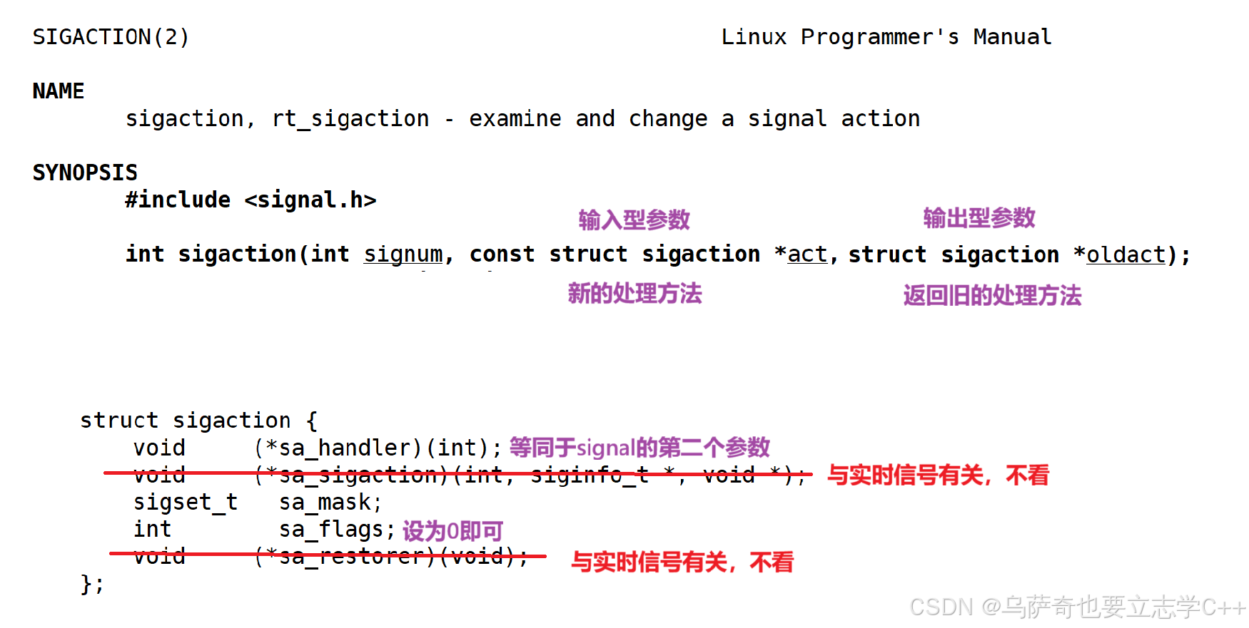sigaction类似我们之前介绍的signal,但是signal功能较单一,虽然未来还是signal用的更多,还是有必要介绍一下sigaction,着重介绍一下和sigaction系统调用重名的结构体sigaction中的sa_mask字段。