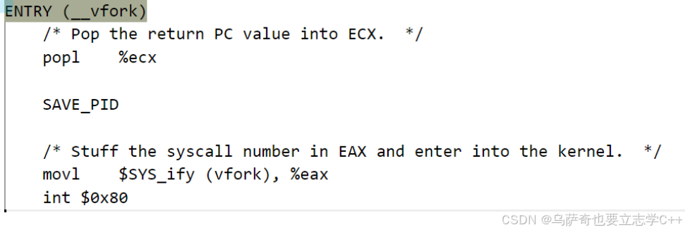 3、补充:OS提供的系统调用并不是C风格的系统调用,而是用系统调用号、约定寄存器、int 0x80等技术提供的系统调用,如下图所示: